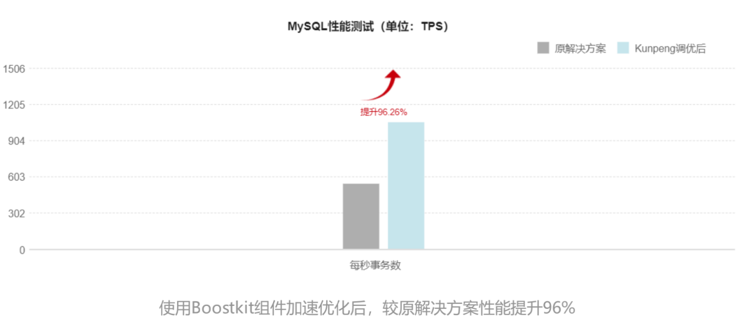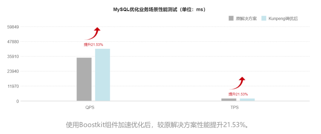 基于Kubernetes上,对MySQL使用华为鲲鹏SSD锁优化后,基于Jmeter 测试工具,针对银行卡挂失的登记业务模拟测试数据进行测试,MySQL的QPS和TPS对业务数据的读写等混合场景性能提升21.53%。