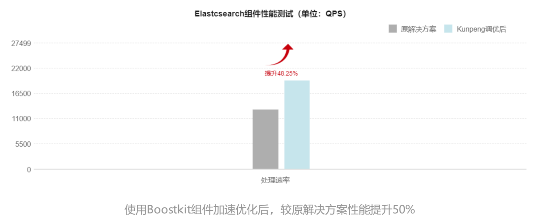 基于Kubernetes上部署Elastcsearch,通过Elasticsearch官方提供的Benchmarkrally脚本,模拟在8C32G3实例的场景下,衡量指标ES的写入性能,使用鲲鹏服务器后,经过测试对比,性能提高48%。