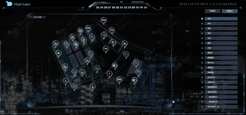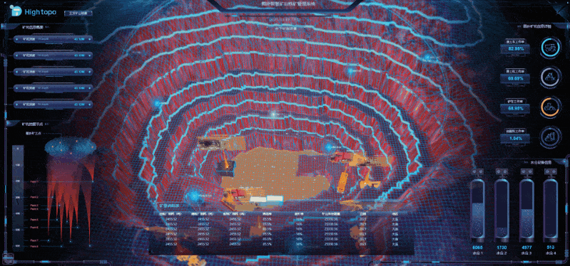 针对控制中心页面的建设,运用 HT 丰富的可视化图表和动画效果,集成供水、通风、运输、掘锚机运作及井内三维漫游画面,形象的对井下多元应用场景进行详尽的数据解释;可融合智能感知设备数据,实现对矿井的生产环境、工作视角、设备分布、工艺流程、产量走势、巷道划分、设备运行实时状态的真实复现,达到矿井上下透明化管理的目的。