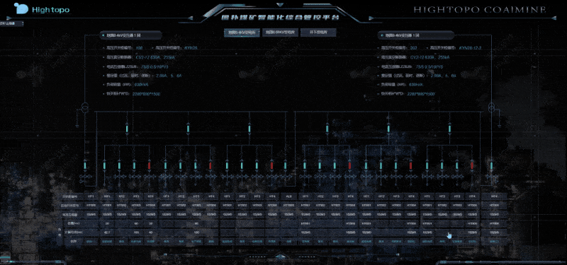 结合 HT 产品 Web 2D 组态功能,再通过数据采集,实现供配电系统可视化,“一张图”式切换矿井上下变电所的设备状态参数显示、电量计量、峰谷电能计量及能耗统计分析等数据。完善了现场无人值守成效和对井上井下供电系统的遥测、遥信、遥调、遥视信息功能的全方位监控。