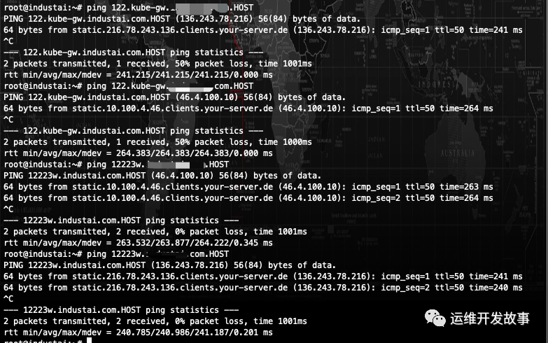 因为server端连接地址在我本地和集群宿主机上是可以正常调用,因此怀疑服务pod到server端地址不通,进入到pod中进行测试,发现的确不能调用,使用ping域名也是可以通的,但是发现ping解析出来的ip地址并不是我们server端的外网ip地址;因此怀疑到了dns解析的问题上,使用nsloopup命令进行排除(通常服务都没有该命令需要手动安装apt-get install dnsutils,yum install bind-utils,或者使用kubectl-debug工具来共享容器排查),解析出来的发现很诡异的name,域名最后面带了一个HOST