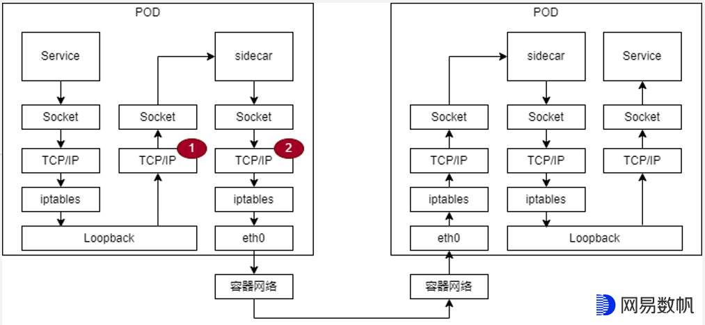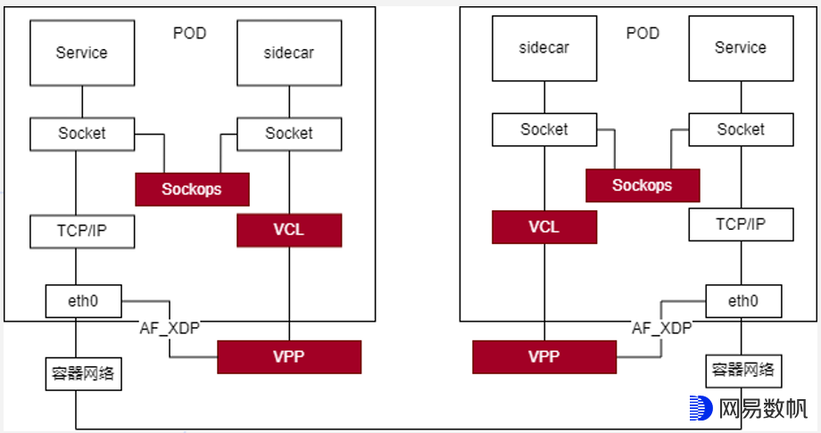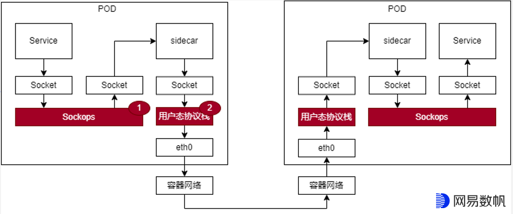 Service和sidecar之间属于同一个节点的两个容器间的通信,可以采用Sockops组件进行加速。