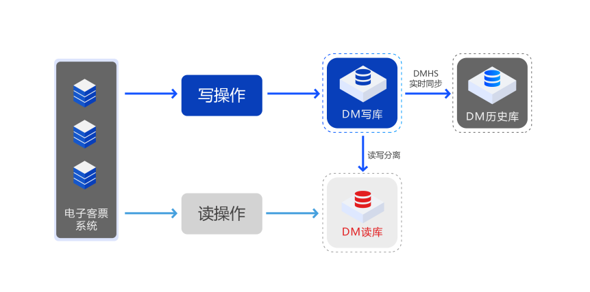 ⚫ 针对电子客票系统 ET 的高并发业务场景,达梦采用读写分离的方案: