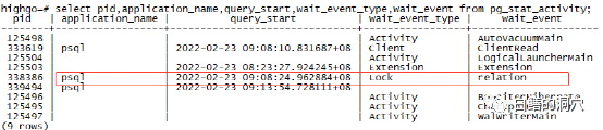 从PG TRUNCATE 实现的原理上,我们也可以看出,这种TRUNCATE虽然和oracle的DDL操作不同,可以rollback,但是TRUNCATE操作不是MVCC-SAFE的,如果我们在一个会话中执行TRUNCATE操作,那么访问这张表的会话是会受到影响的。我们可以做个实验,在一个PSQL会话中设置AUTOCOMMIT=’off’,然后执行TRUNCATE TABLE命令,在另外一个PSQL会话中执行select这张表的操作,此时,这个SELECT操作会被直接挂起,从pg_stat_activity中可以看到,这个会话在等待一个relation锁。