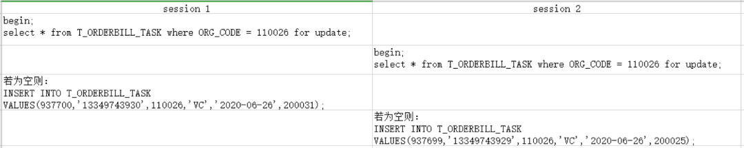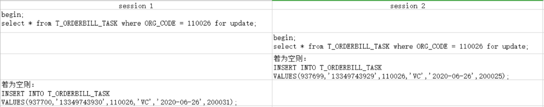 结合业务开发提供的该模块儿的业务逻辑和发生死锁时间上下文业务日志可以整理出事务1和事务2的执行顺序为: