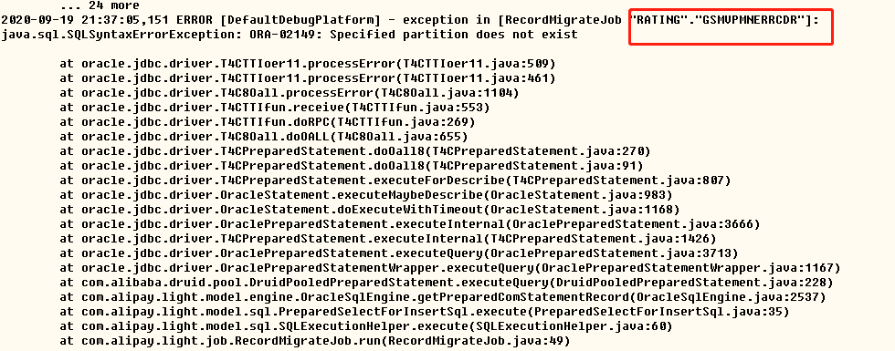 数据全量迁移过程中发生ora-02149Specified partition does not exist报错