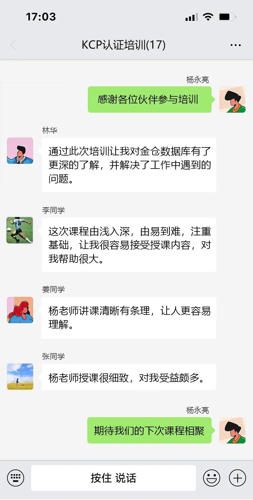 进行了授课,他根据学员特点和个性需求,针对KCP授课内容进行了微调和补充,为学员提供了更加科学、易于理解的培训。本次培训获得学员们的一致好评,学员们表示:对人大金仓KES功能、性能、应用体系都有了更加深入的了解,这次国防业务课程培训有效提升了每位学员对于数据库的综合应用能力。