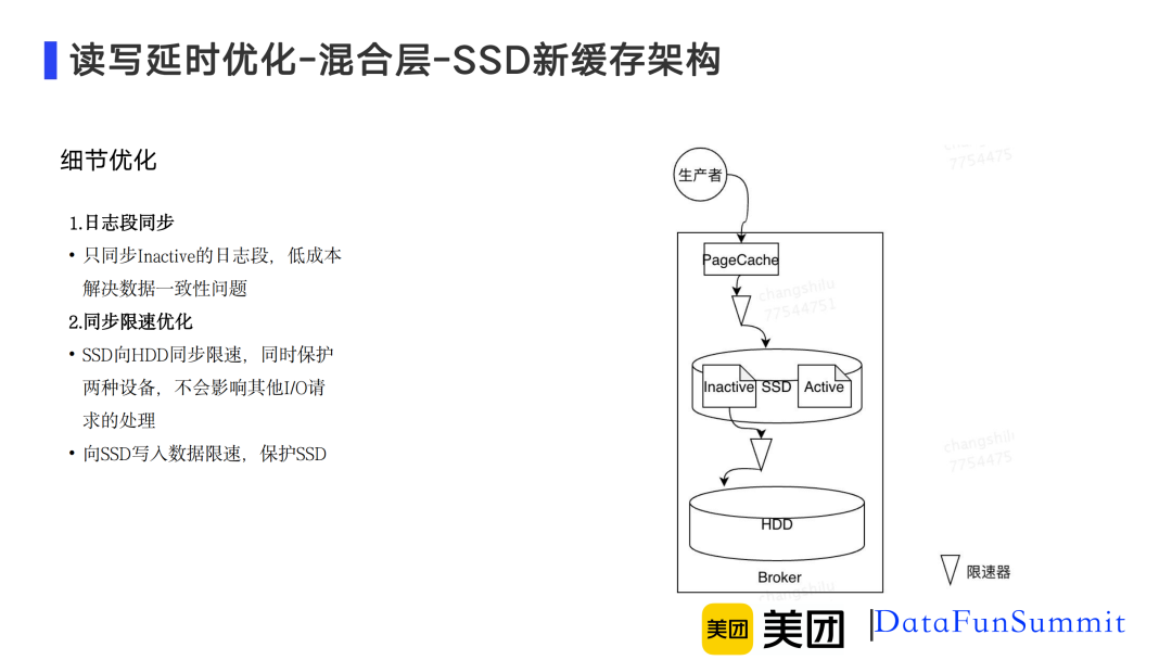 其次是做同步限速优化,在SSD向HDD同步时是需要限速的,同时保护了两种设备,不会影响其他IO请求的处理,向SSD写入数据也是需要限速的,因为SSD的使用寿命是有限的。