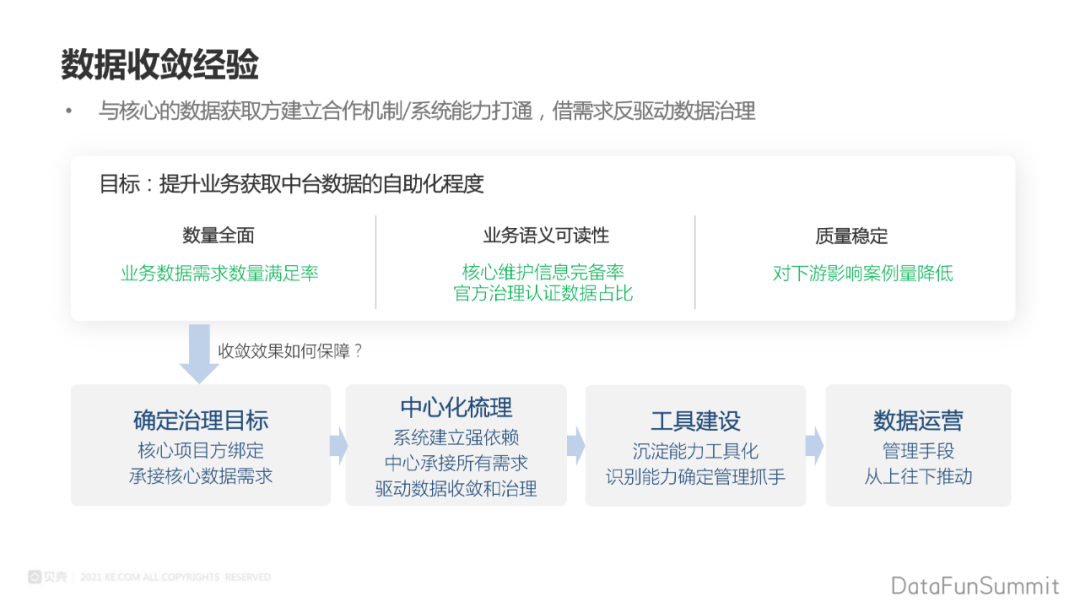 A:这里所说的数据收敛,是指把管控的高流通数据都统一收口到平台。数据治理首先要让数据透明化,将猎物关在篮子里,才能对质量进行管控。