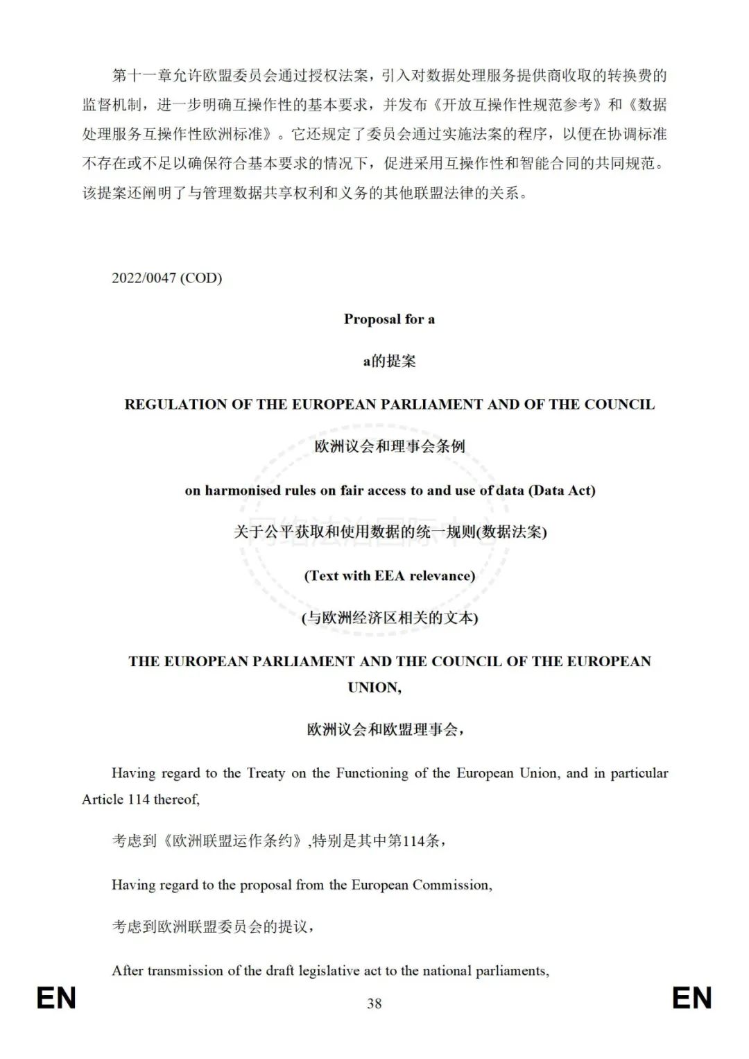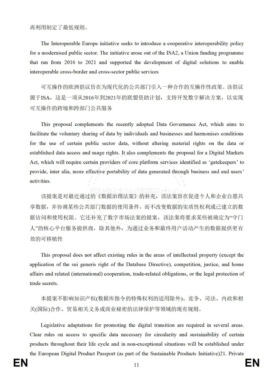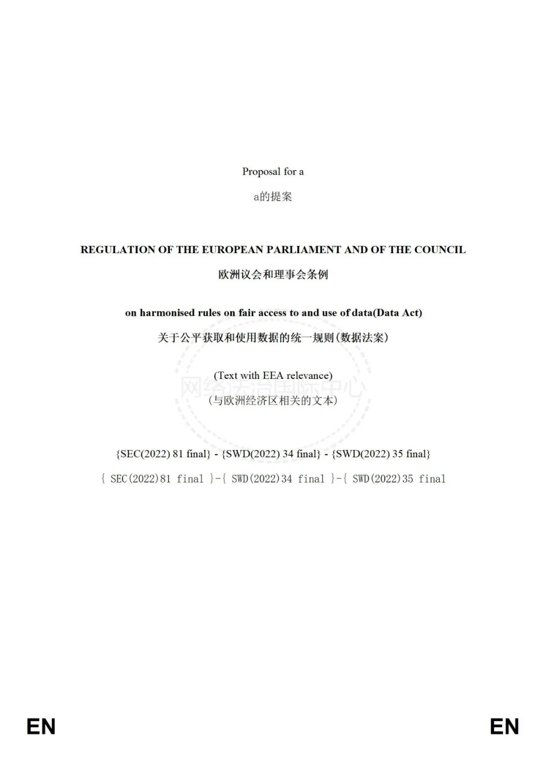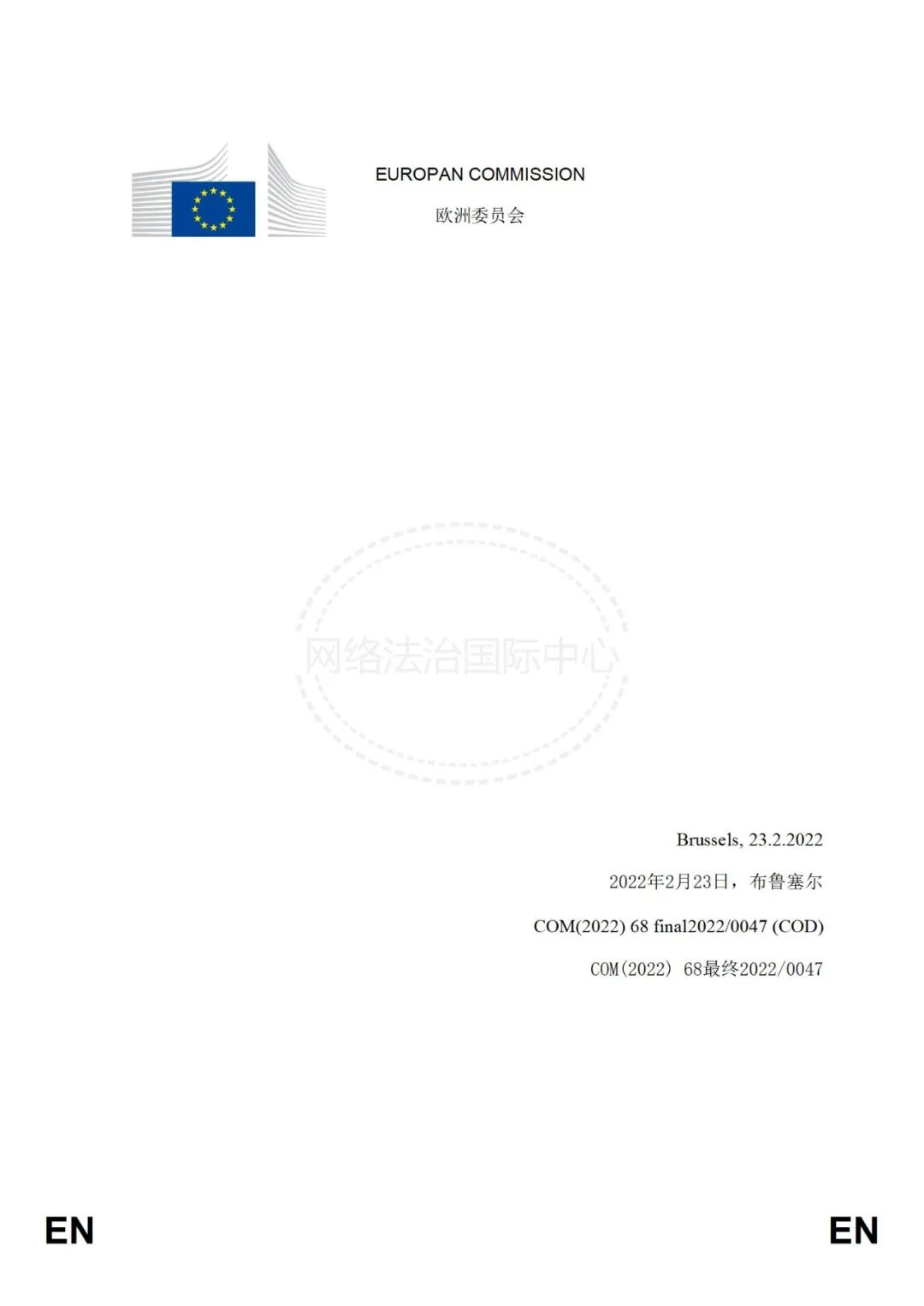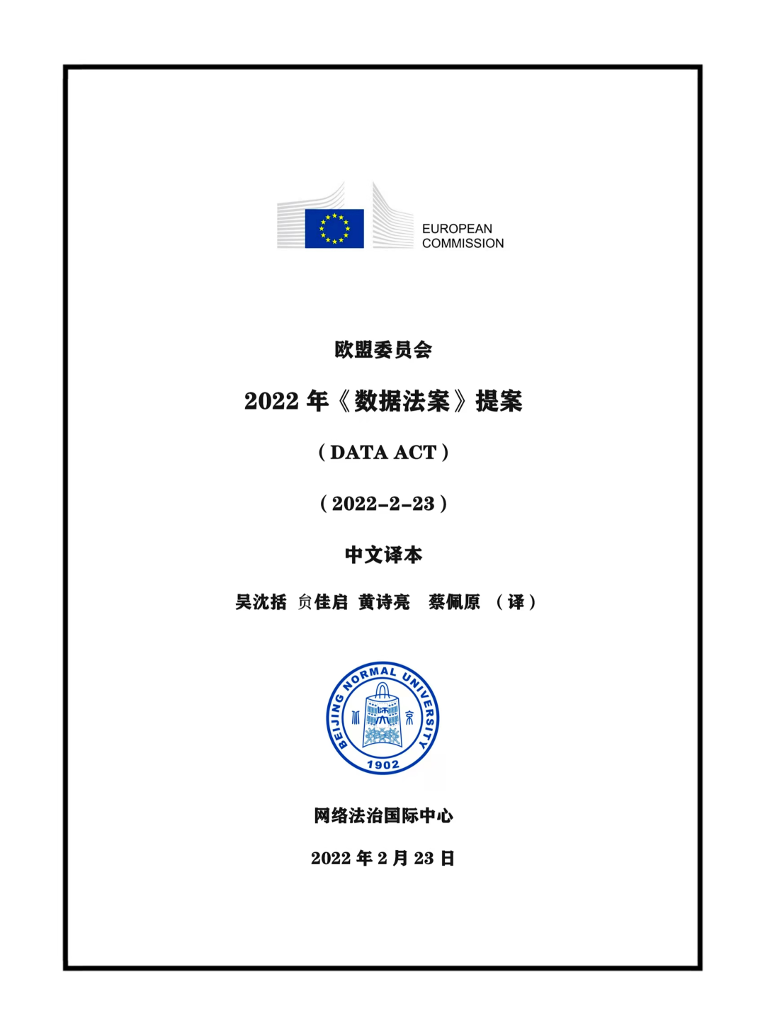 2022年2月23日,欧盟委员会如期公布新一代数据治理立法《数据法案》(Data Act)草案全文。该草案条文涉及数据共享、公共机构访问、国际数据传输、云转换和互操作性等诸多方面等规定,监管对象主要为互联网产品的制造商、数字服务提供商和用户等,具有重要的风控合规风向标意义。网络法治国际中心团队完成该法案中文译本并收录于LexiNexi数据库。—— 吴沈括,网络法治国际中心执行主任、博导、中国互联网协会研究中心副主任。