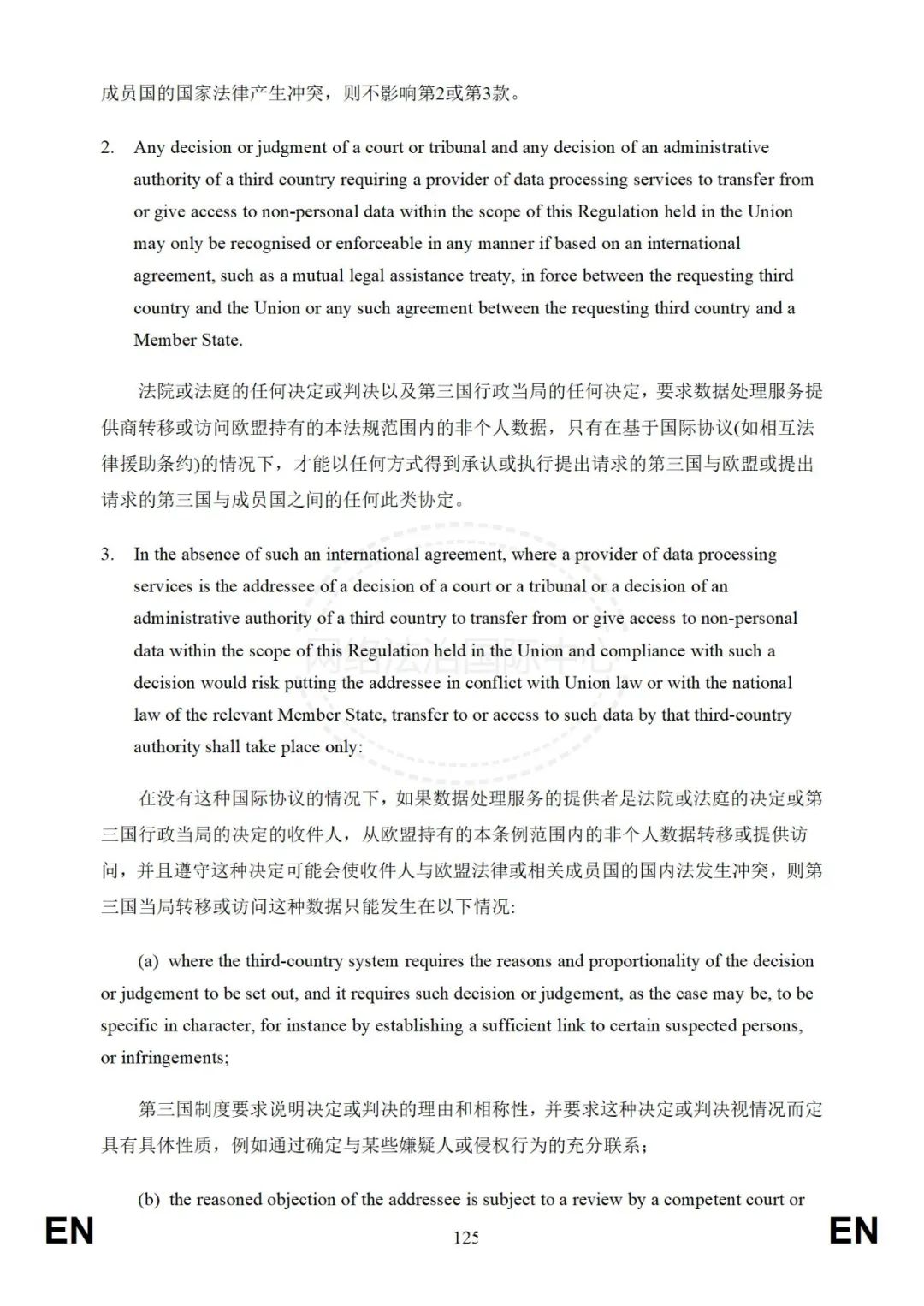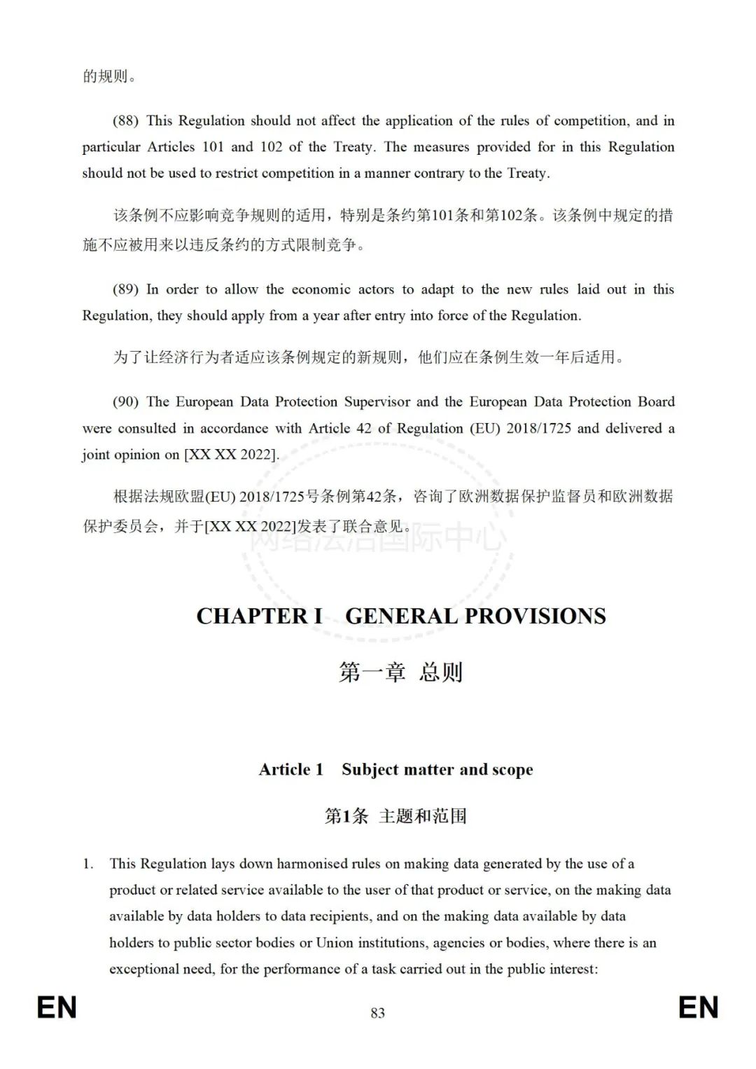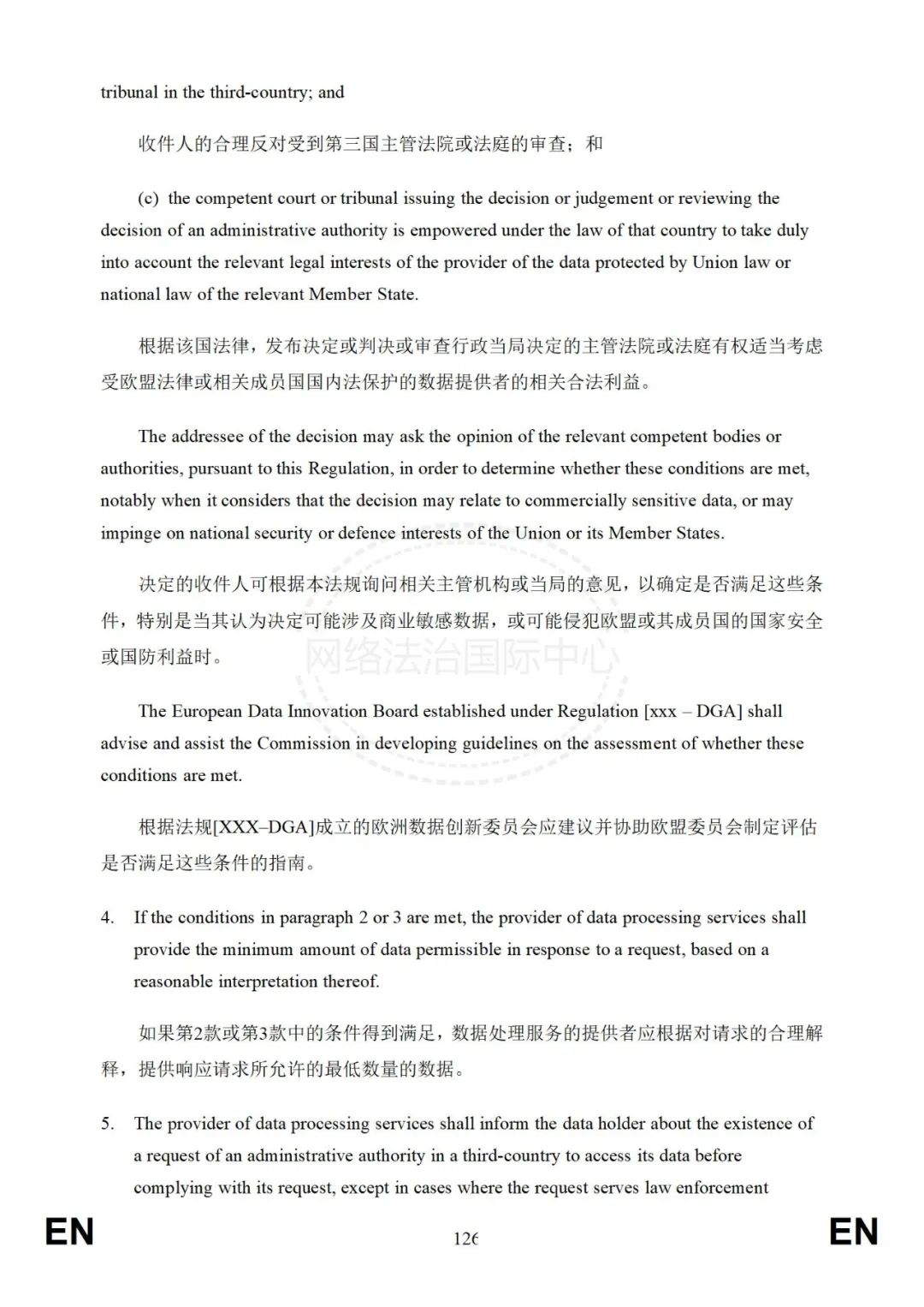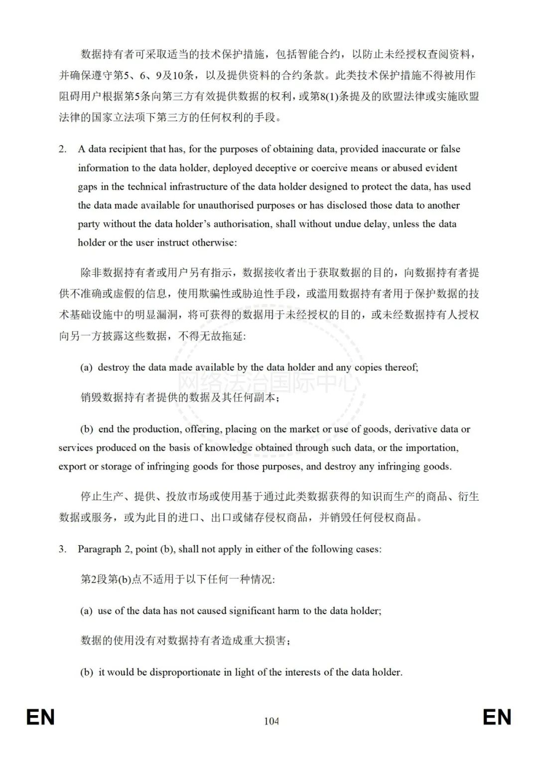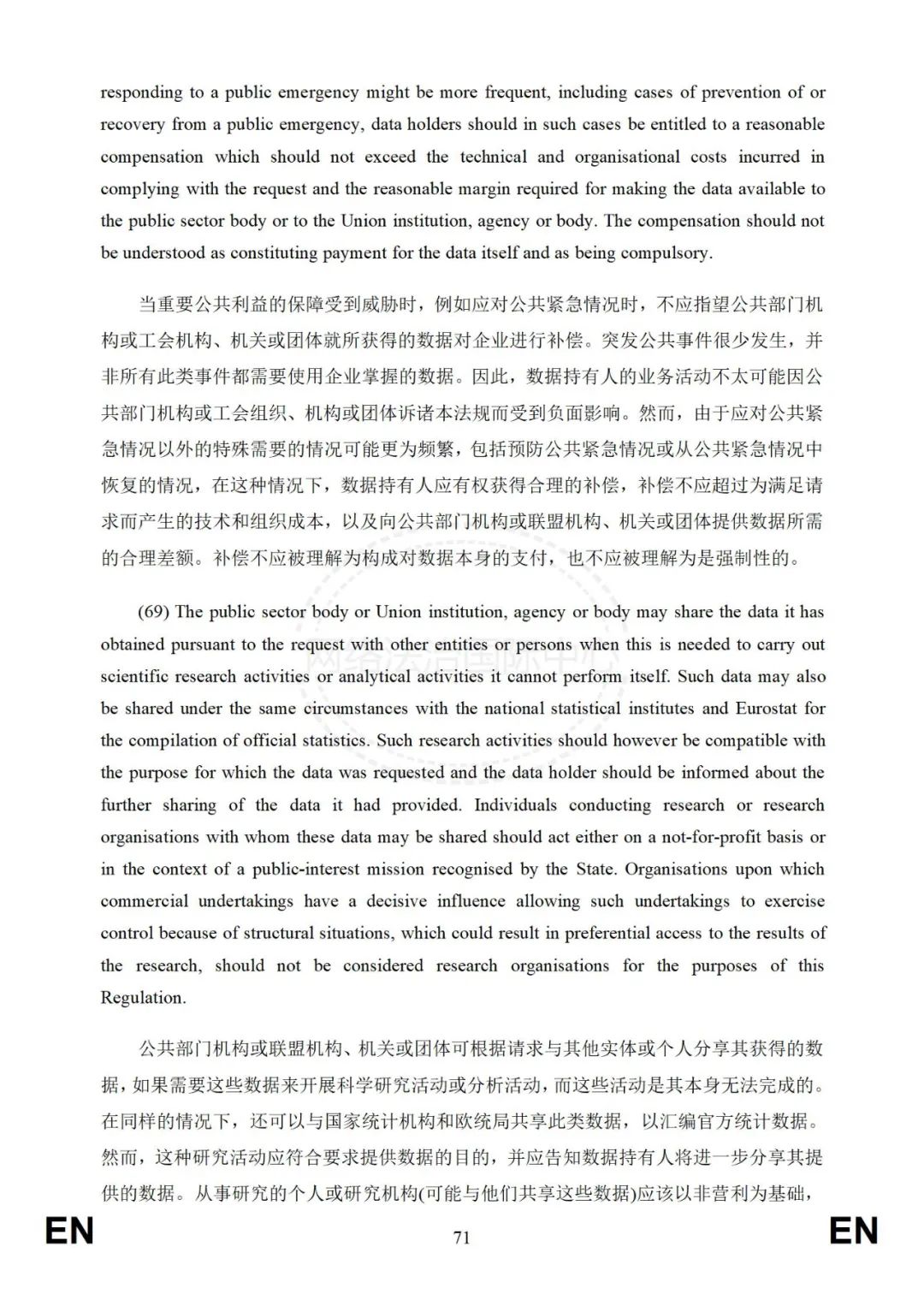 2022年2月23日,欧盟委员会如期公布新一代数据治理立法《数据法案》(Data Act)草案全文。该草案条文涉及数据共享、公共机构访问、国际数据传输、云转换和互操作性等诸多方面等规定,监管对象主要为互联网产品的制造商、数字服务提供商和用户等,具有重要的风控合规风向标意义。网络法治国际中心团队完成该法案中文译本并收录于LexiNexi数据库。—— 吴沈括,网络法治国际中心执行主任、博导、中国互联网协会研究中心副主任。