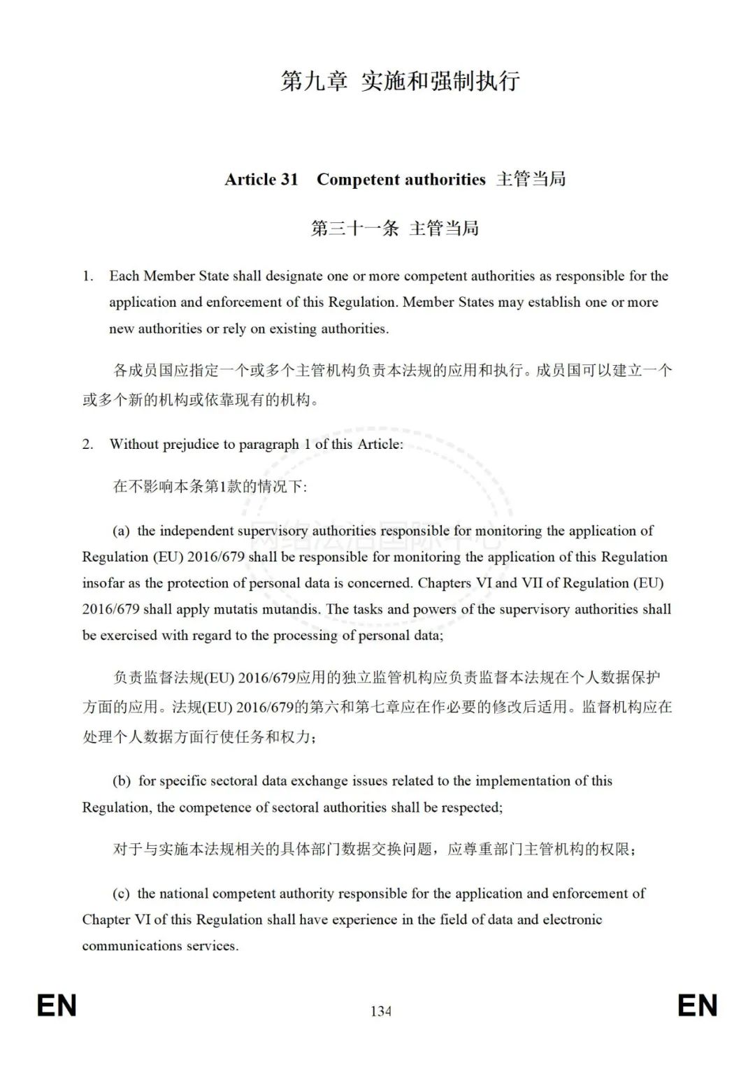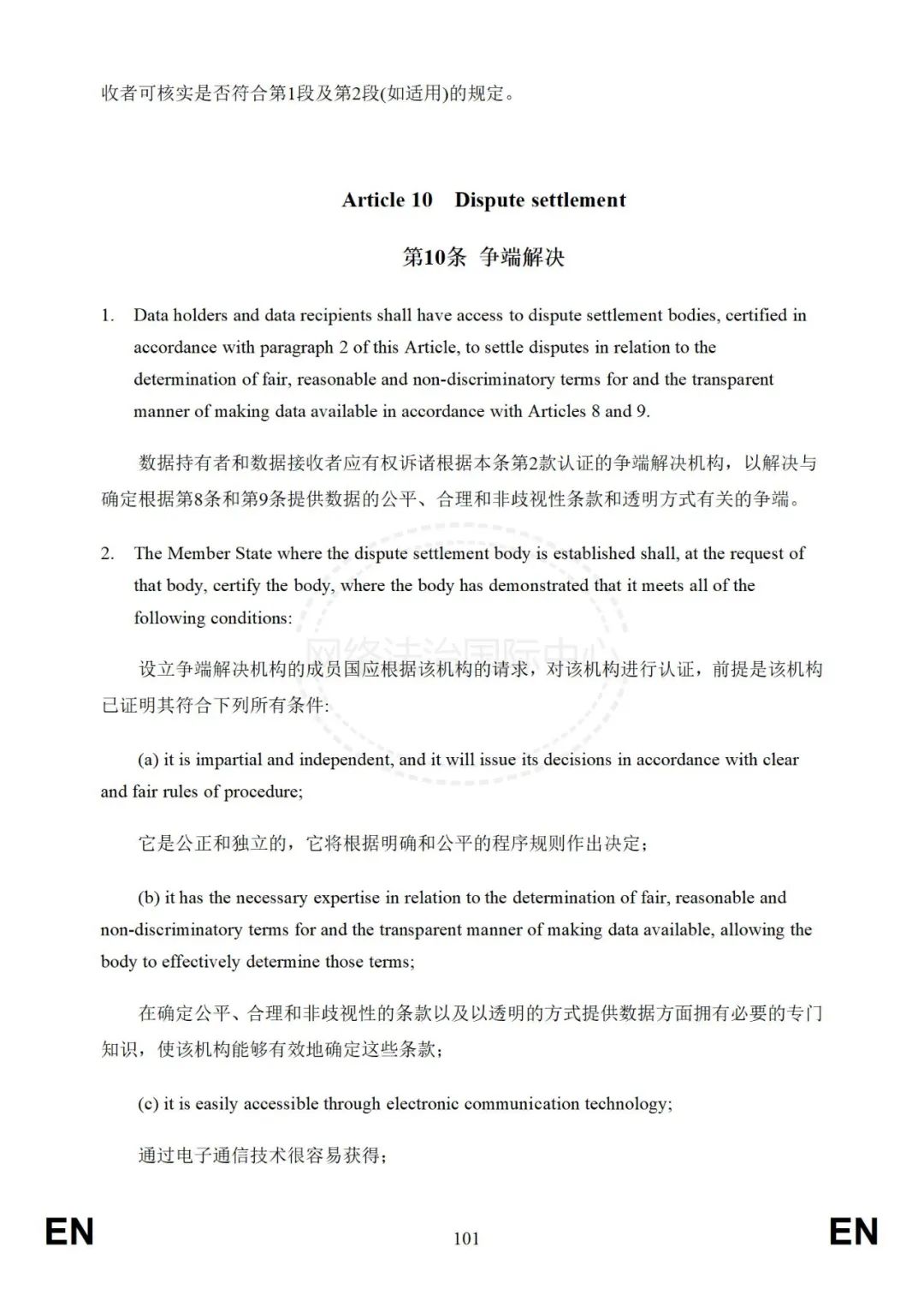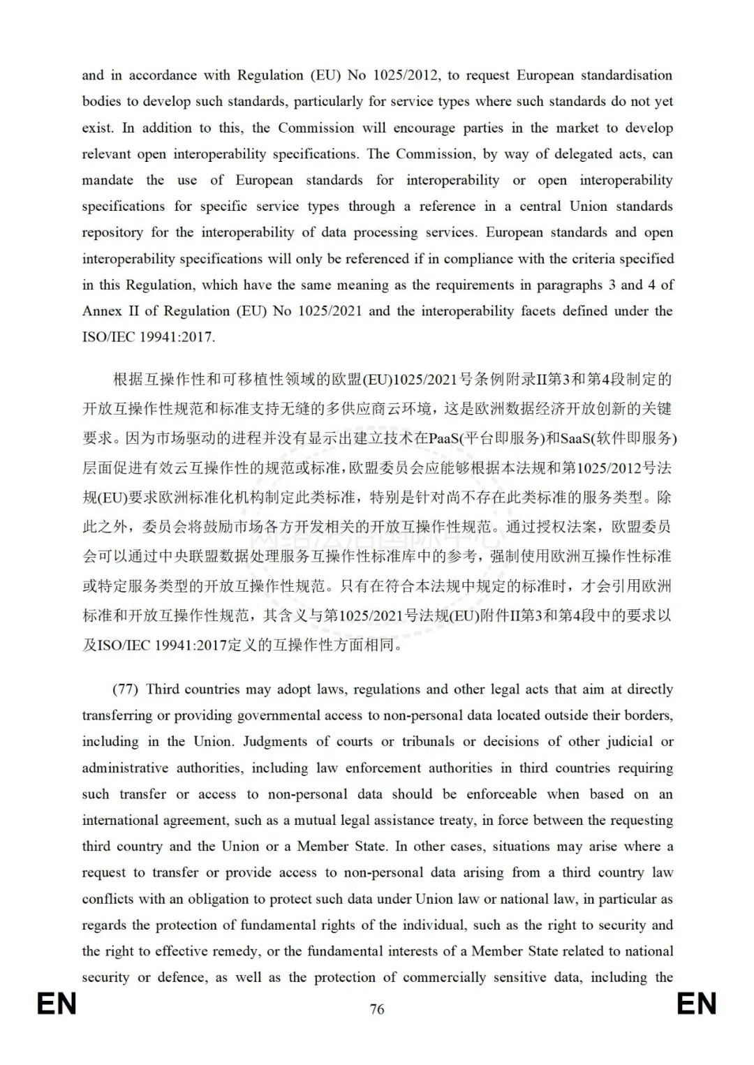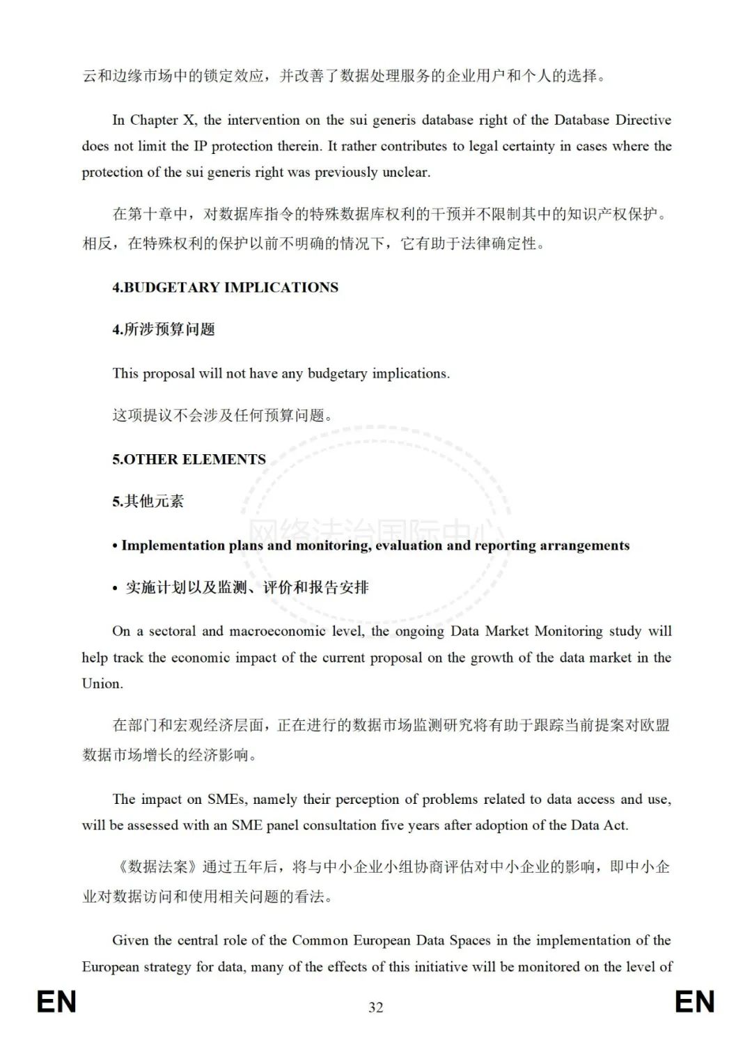 2022年2月23日,欧盟委员会如期公布新一代数据治理立法《数据法案》(Data Act)草案全文。该草案条文涉及数据共享、公共机构访问、国际数据传输、云转换和互操作性等诸多方面等规定,监管对象主要为互联网产品的制造商、数字服务提供商和用户等,具有重要的风控合规风向标意义。网络法治国际中心团队完成该法案中文译本并收录于LexiNexi数据库。—— 吴沈括,网络法治国际中心执行主任、博导、中国互联网协会研究中心副主任。