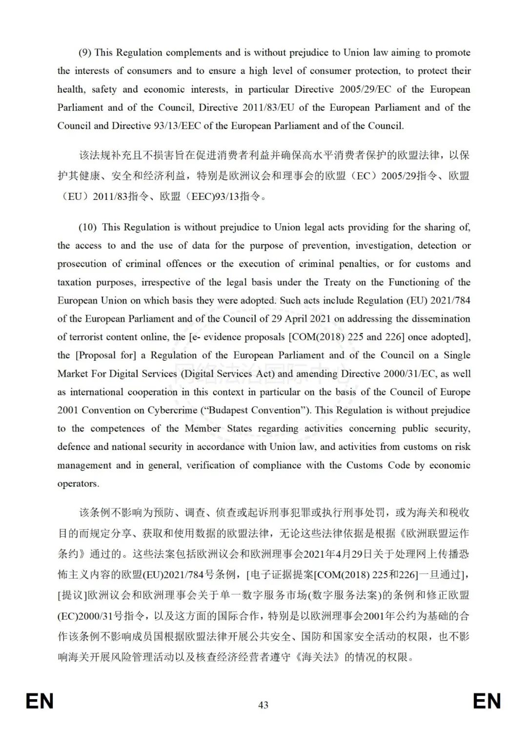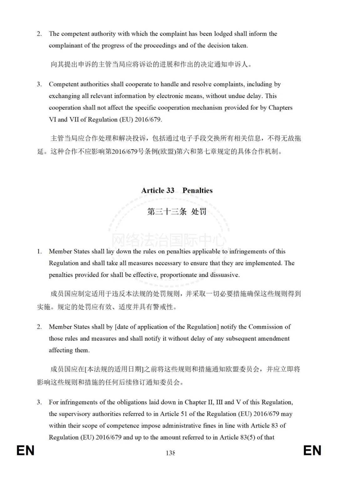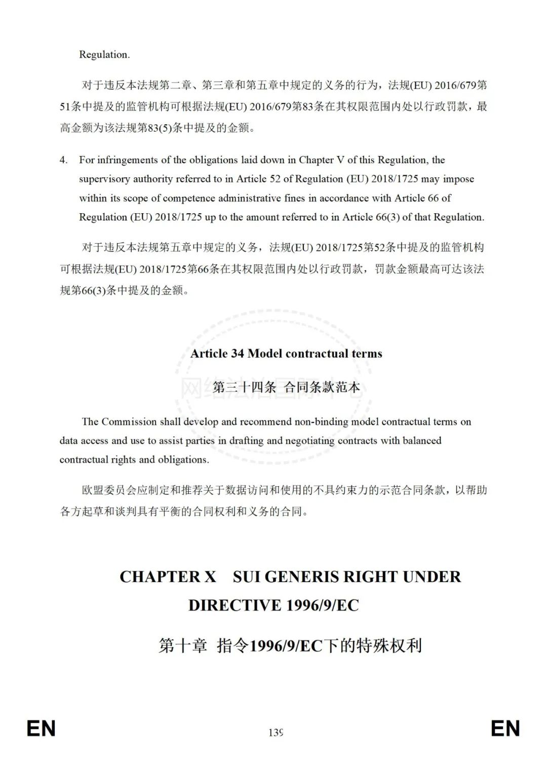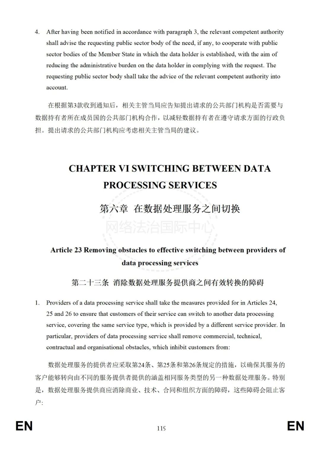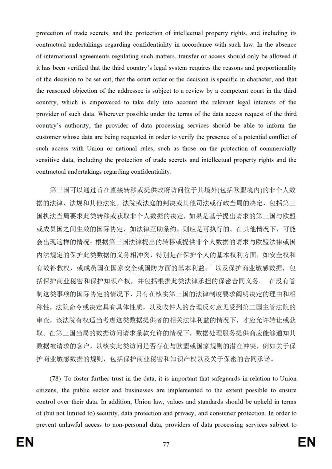 2022年2月23日,欧盟委员会如期公布新一代数据治理立法《数据法案》(Data Act)草案全文。该草案条文涉及数据共享、公共机构访问、国际数据传输、云转换和互操作性等诸多方面等规定,监管对象主要为互联网产品的制造商、数字服务提供商和用户等,具有重要的风控合规风向标意义。网络法治国际中心团队完成该法案中文译本并收录于LexiNexi数据库。—— 吴沈括,网络法治国际中心执行主任、博导、中国互联网协会研究中心副主任。