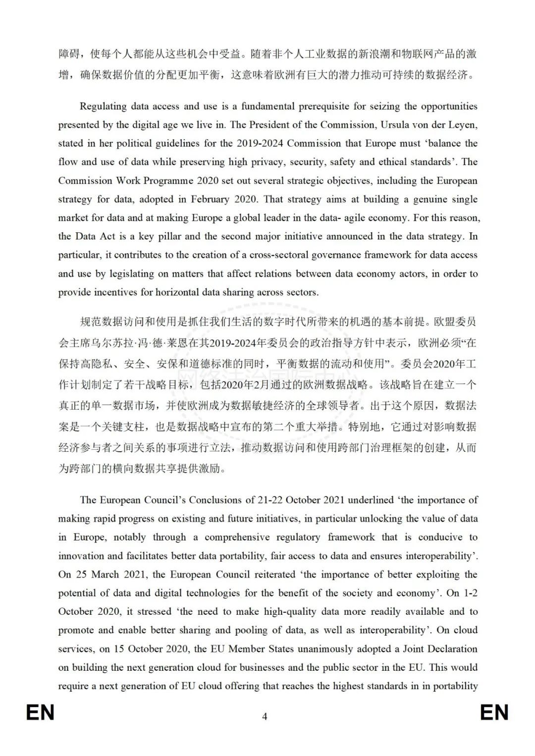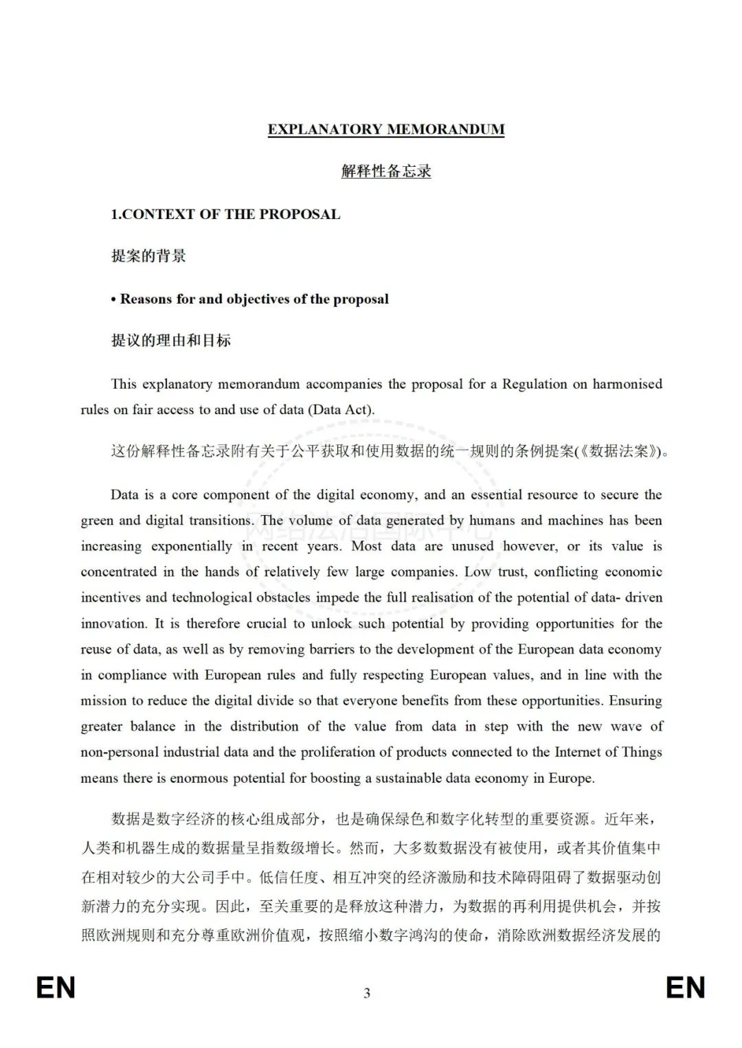 这份解释性备忘录附有关于公平获取和使用数据的统一规则的条例提案(《数据法案》)。