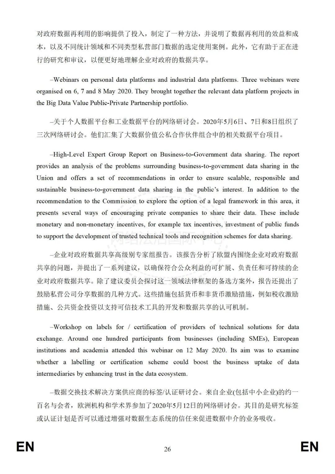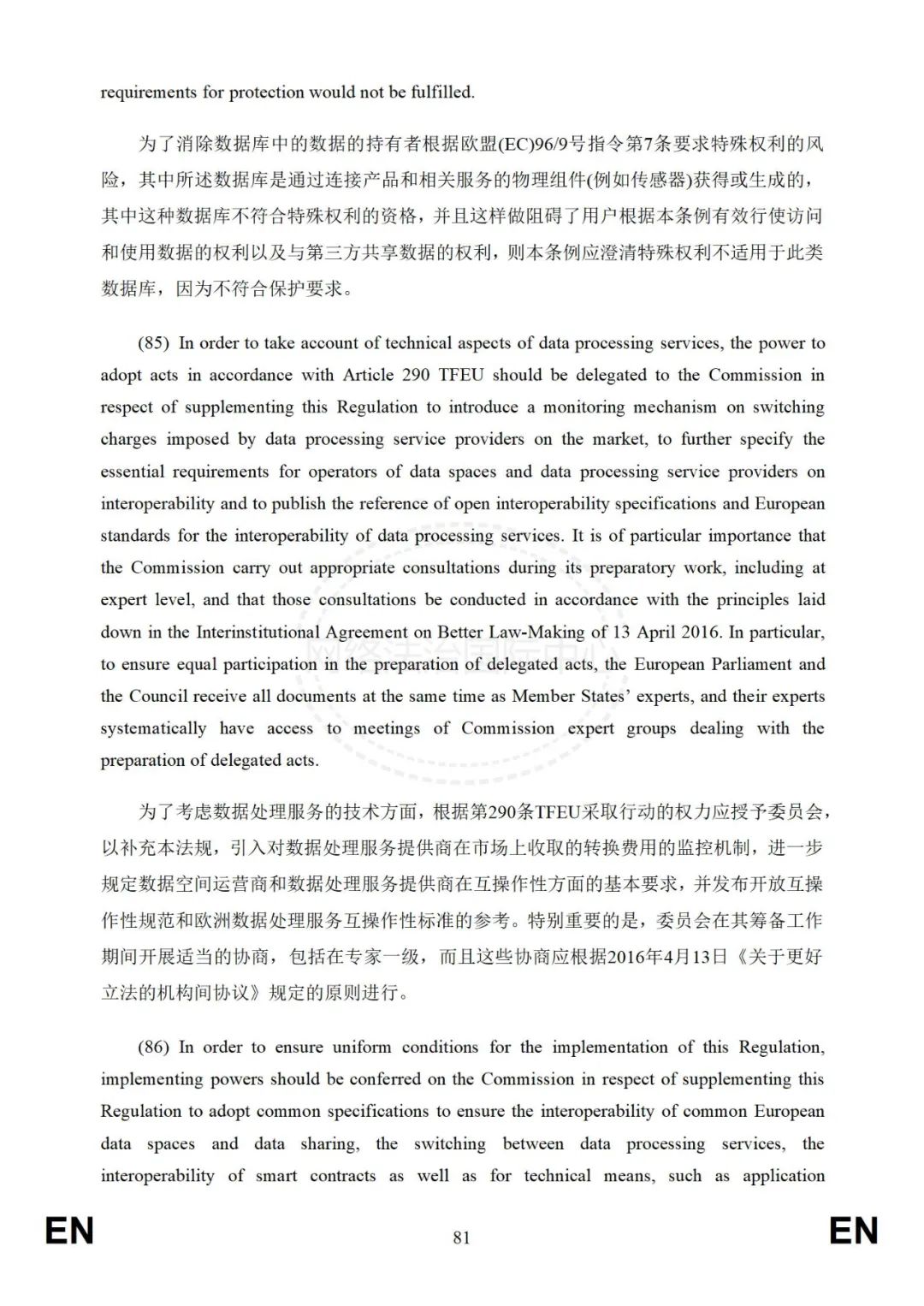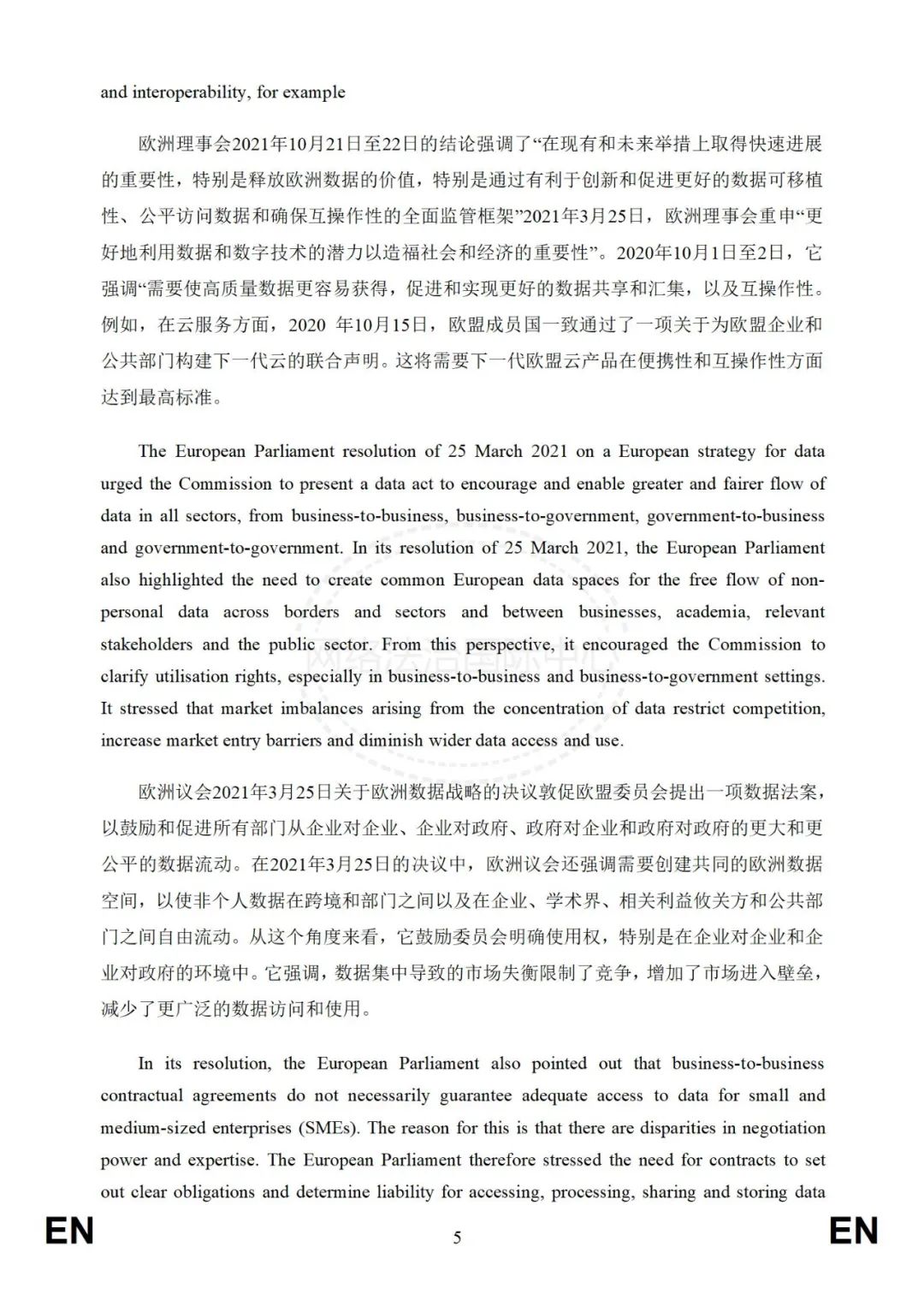 欧洲理事会2021年10月21日至22日的结论强调了“在现有和未来举措上取得快速进展的重要性,特别是释放欧洲数据的价值,特别是通过有利于创新和促进更好的数据可移植性、公平访问数据和确保互操作性的全面监管框架”2021年3月25日,欧洲理事会重申“更好地利用数据和数字技术的潜力以造福社会和经济的重要性”。2020年10月1日至2日,它强调“需要使高质量数据更容易获得,促进和实现更好的数据共享和汇集,以及互操作性。例如,在云服务方面,2020 年10月15日,欧盟成员国一致通过了一项关于为欧盟企业和公共部门构建下一代云的联合声明。这将需要下一代欧盟云产品在便携性和互操作性方面达到最高标准。