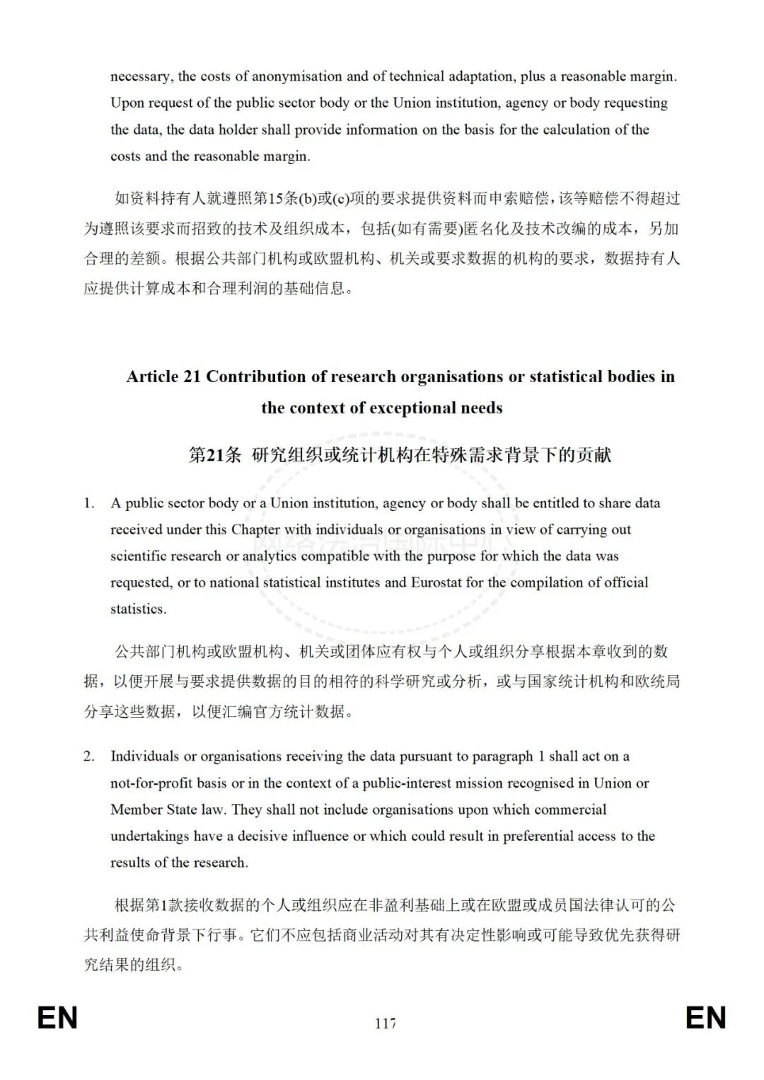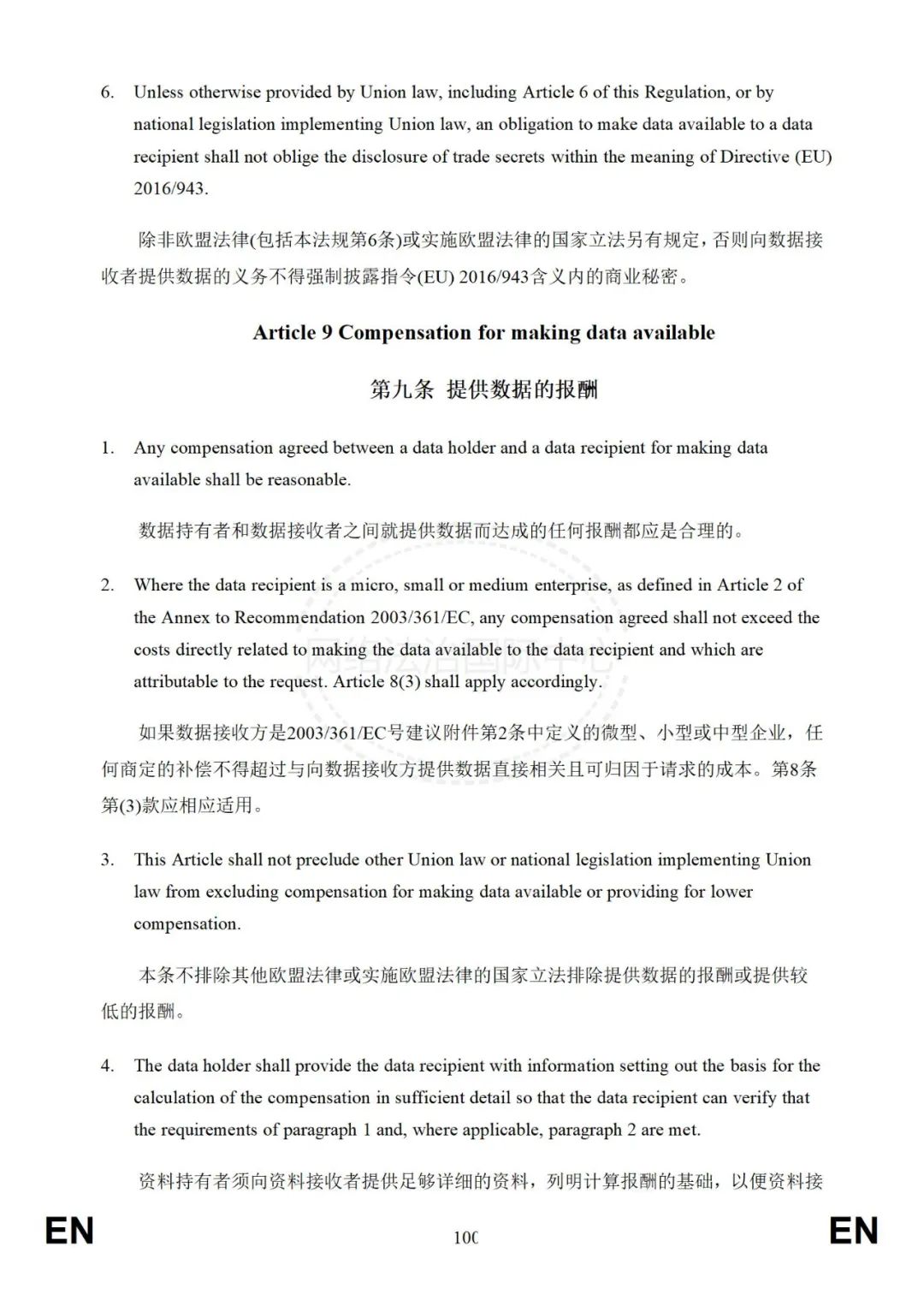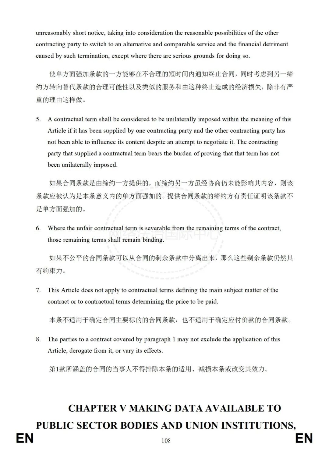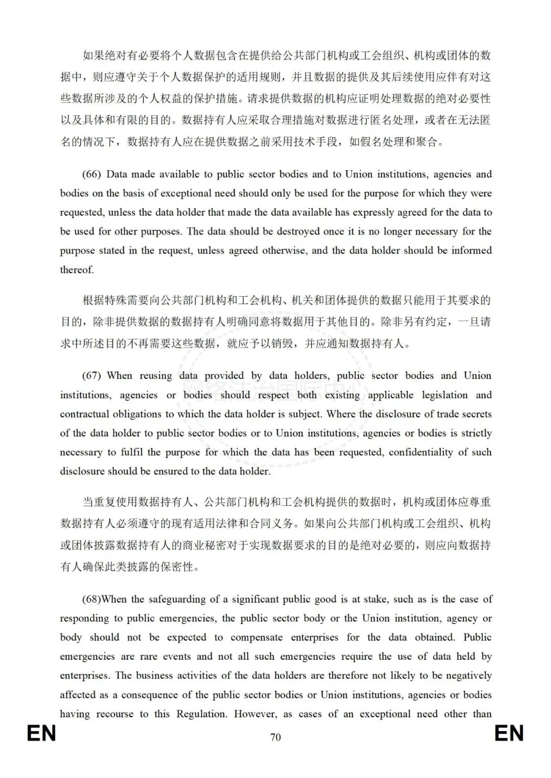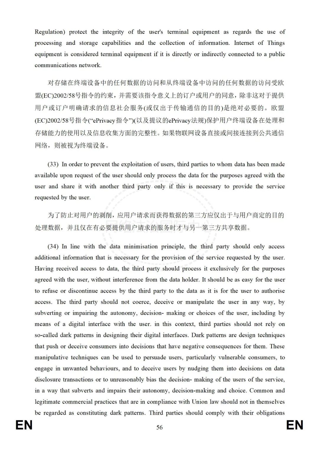 欧洲议会在其决议中还指出,企业对企业的合同协议不一定保证中小企业能够充分获取数据。这是因为在谈判能力和专业知识方面存在差距。因此,欧洲议会强调,合同需要规定明确的义务,并确定获取、处理、共享和存储数据的责任,以限制数据的滥用。(《法案》以下译文参阅下图)