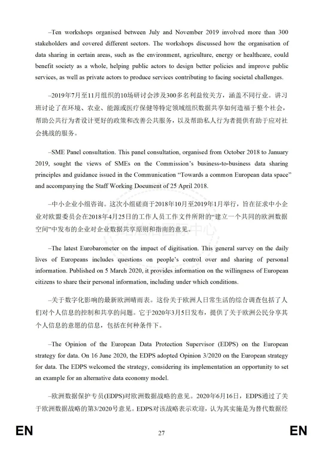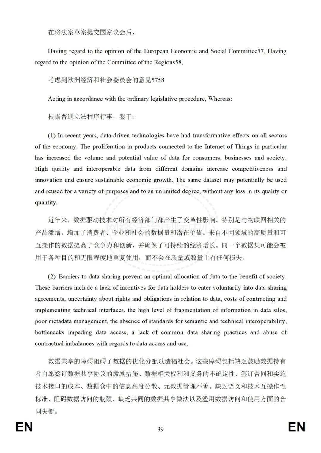 数据是数字经济的核心组成部分,也是确保绿色和数字化转型的重要资源。近年来,人类和机器生成的数据量呈指数级增长。然而,大多数数据没有被使用,或者其价值集中在相对较少的大公司手中。低信任度、相互冲突的经济激励和技术障碍阻碍了数据驱动创新潜力的充分实现。因此,至关重要的是释放这种潜力,为数据的再利用提供机会,并按照欧洲规则和充分尊重欧洲价值观,按照缩小数字鸿沟的使命,消除欧洲数据经济发展的障碍,使每个人都能从这些机会中受益。随着非个人工业数据的新浪潮和物联网产品的激增,确保数据价值的分配更加平衡,这意味着欧洲有巨大的潜力推动可持续的数据经济。