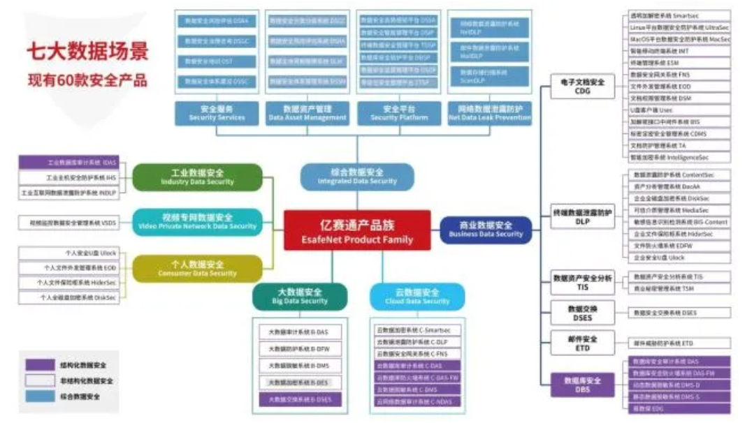 亿赛通通过联动丰富的数据安全产品及行业解决方案,有效帮助客户从结构化、非结构化和半结构化数据安全管理三个维度,守护客户数据安全。