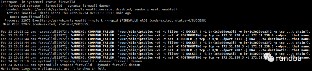 发现防火墙关闭,但存在大量防火墙转发规则,防火墙关闭导致NAT规则不生效。