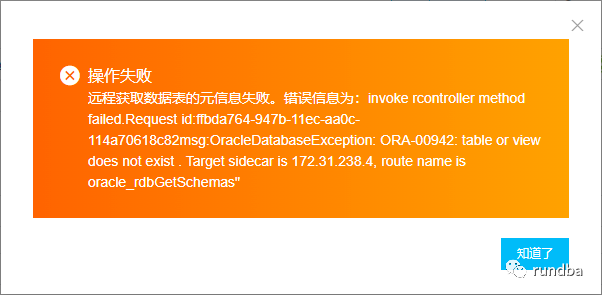 使用CloudCanal同步ORACLE到StarRocks时,创建任务测试连接或创建任务下一步时会报错:ORA-00942: table or view does not exist .