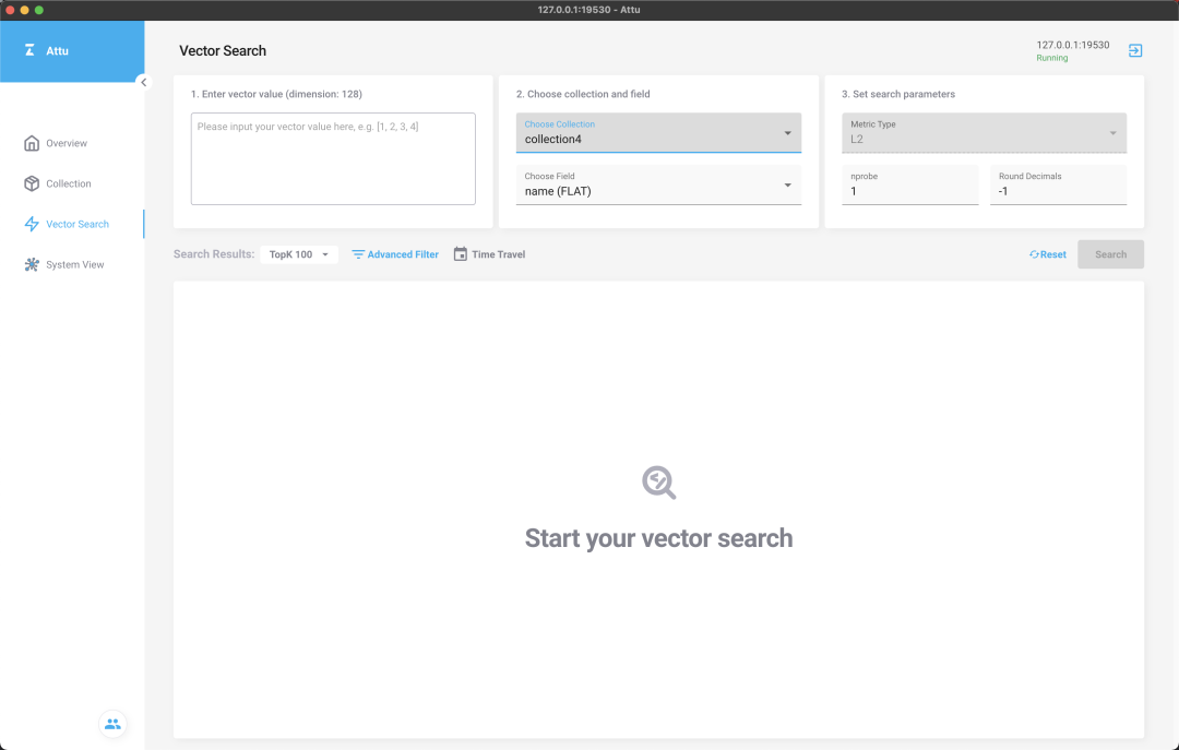 启动成功后的界面如下图所示,输入正确的 Milvus IP 及端口就能进入 Attu 了!
