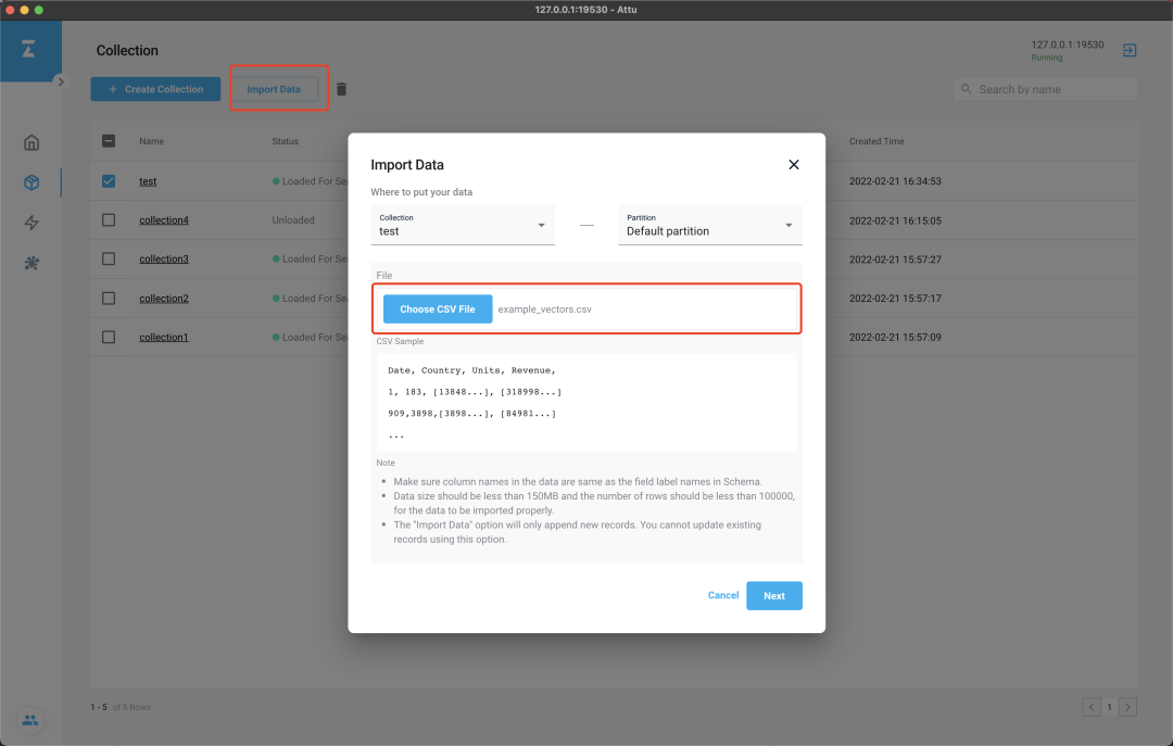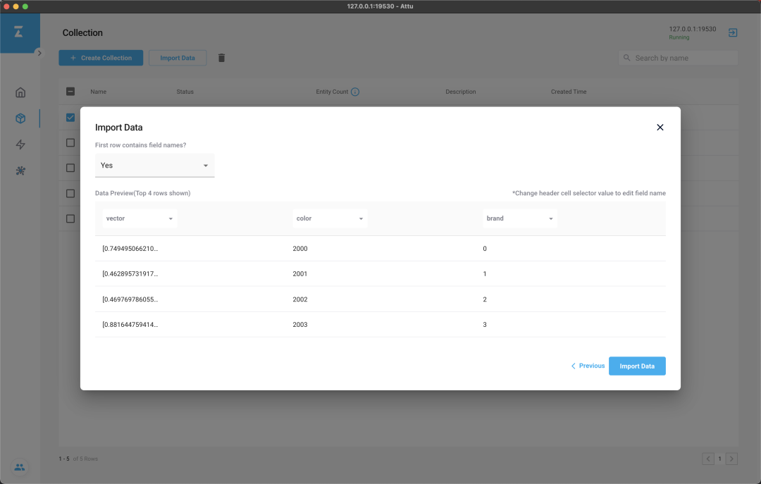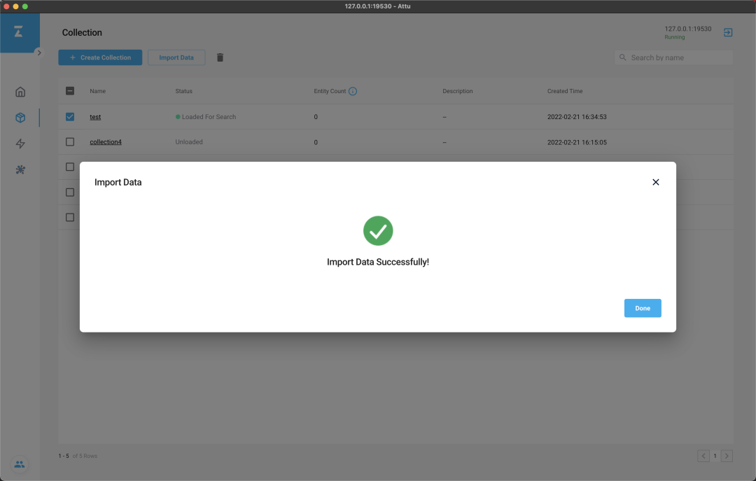 接下来,我们将使用测试数据,与你一同探索 Attu 的各个功能。