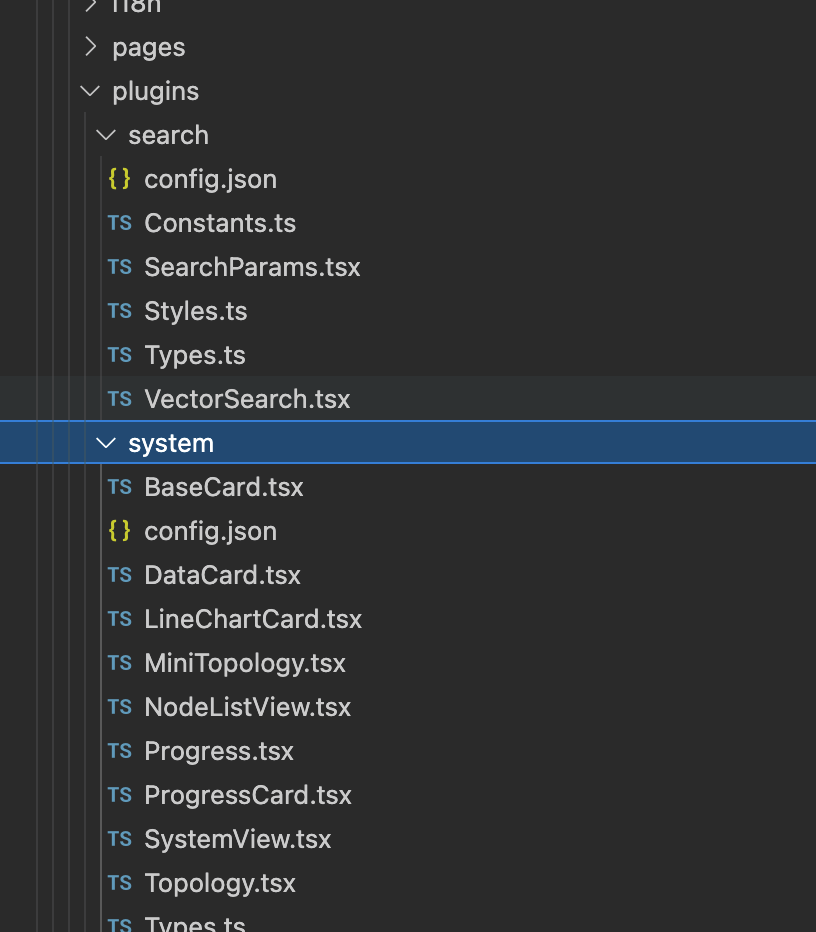 前文提到,目前系统中的 Vector Search 及 System View 两个标签页是以插件的形式加载到 Attu 中的。我们鼓励用户开发满足自身业务需要的组件,以插件的形式添加到 Attu 中来。在 Attu 代码中,有专门的 plugins 目录用来存放插件代码。你可以参考其中任意一个插件的代码来学习如何创建插件。配置如下 config 文件,系统就会加载插件到 Attu 中来: