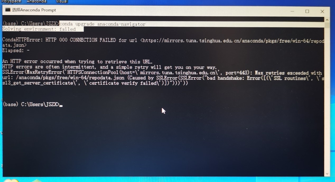 在排查问题时发现,在断网情况下能正常打开Anaconda,会提示需要更新,软件能正常使用。