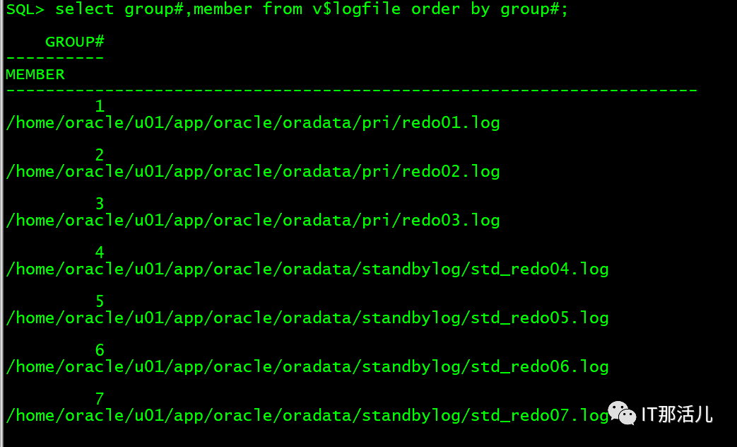 SQL> set pagesize 100SQL> col member for a60SQL> select group#,member from v$logfile order by group#;