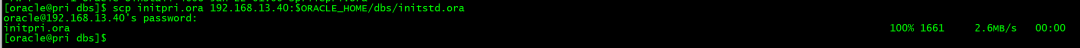 [oracle@pri dbs]$ scp initpri.ora 192.168.13.40:$ORACLE_HOME/dbs/initstd.ora