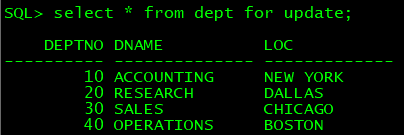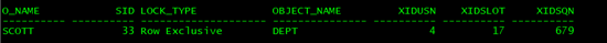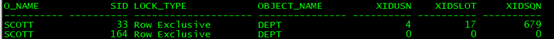 DEPT表中有4条记录被锁定,但TX锁只有1个,这也与上面的理论分析一致。(查询v$lock所得)