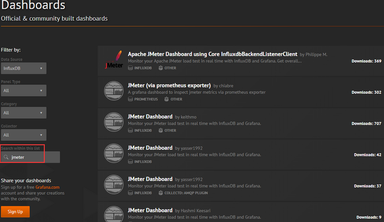创建好数据源之后,就需要创建DashBoard(仪表盘),可以自定义,也可以导入你需要的仪表盘,官方提供了很多的可选仪表盘。