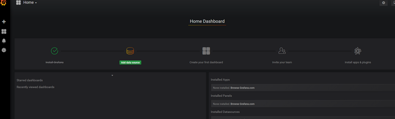 首先是添加数据源,点击左上角的grafana图标,示例如下: