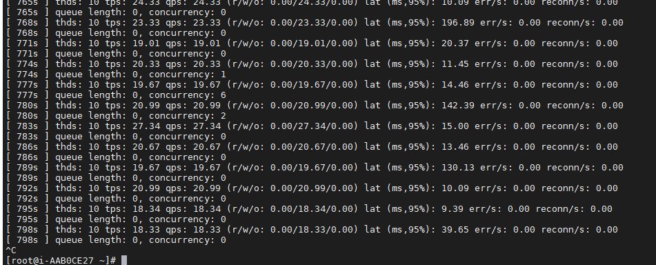 #执行测试【保持命令行开启】#192.168.6.61 #运行成功会发现程序不断读写数据库,压测脚本用于模拟数据库业务持续进行数据的读写操作。