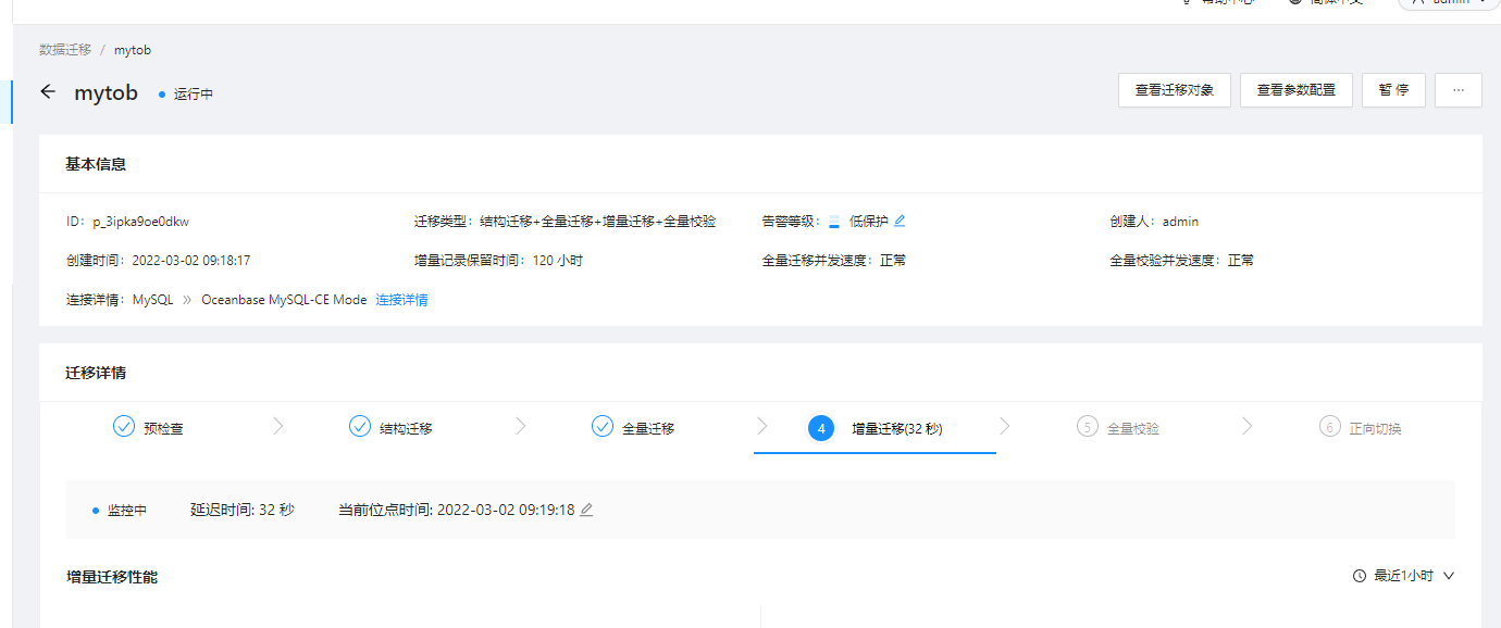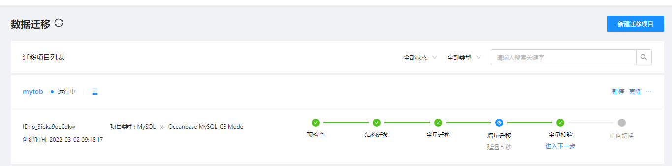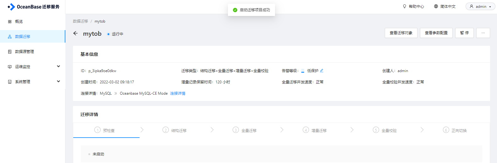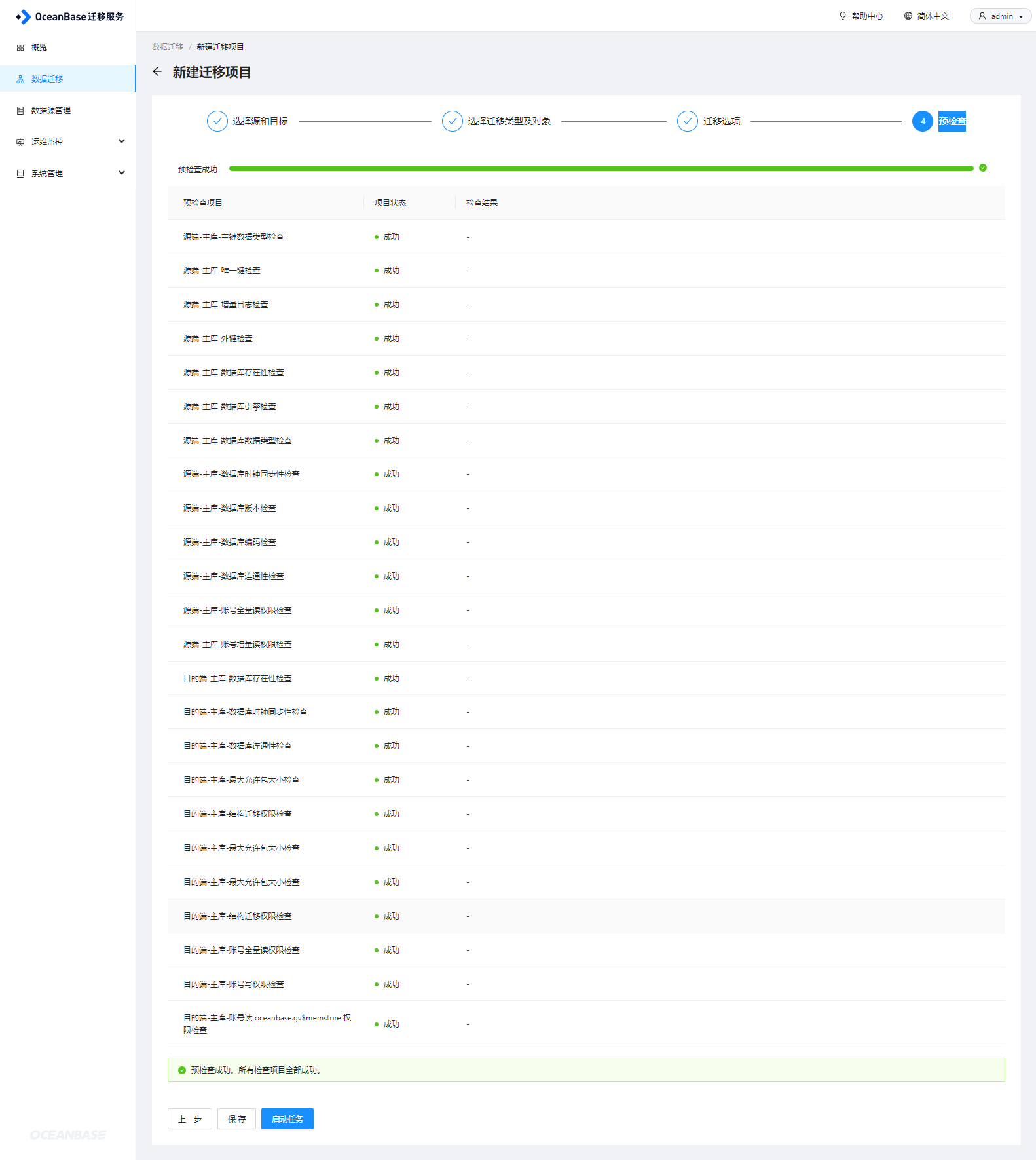 观察源数据库和目标数据库对比情况。最后一次确认数据完全一致,即全部数据迁移至OB数据库。