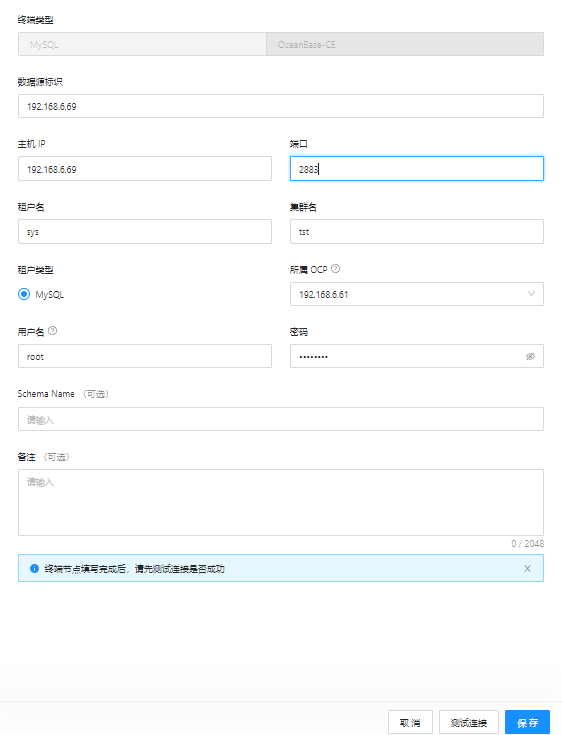 | 192.168.6.69 | 2883 | OB_MYSQL_CE 3.1.0 |