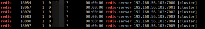 其他节点和7001类似启动,启动后进程中会标记redis节点以cluster模式启动