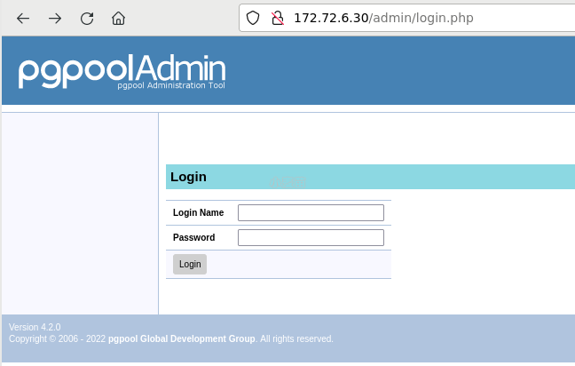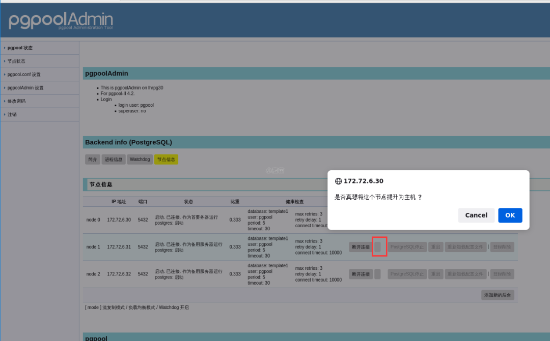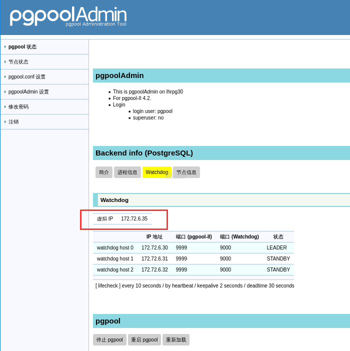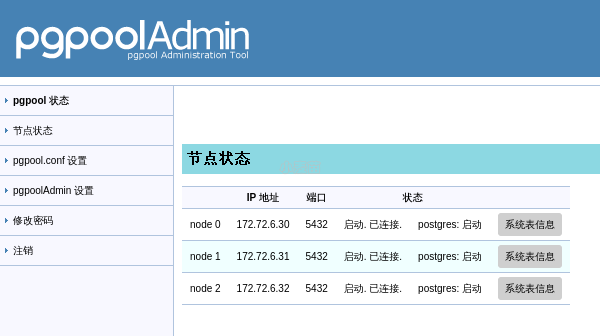 登陆:http://172.72.6.30/admin/login.php ,用户名和密码:pgpooladmin/lhr