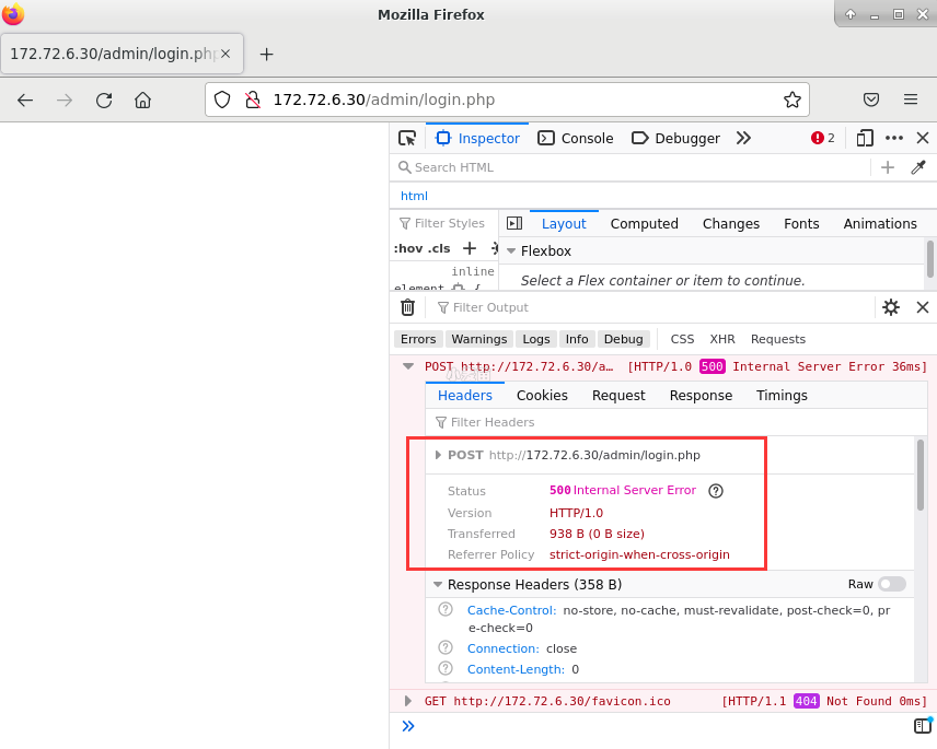 可以正常进入登录界面,但是输入用户名和密码后,报错“500 Internal Server Error”,如下: