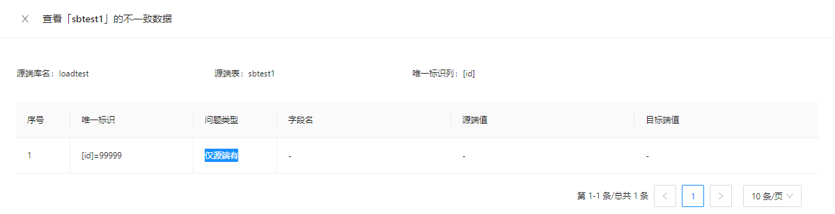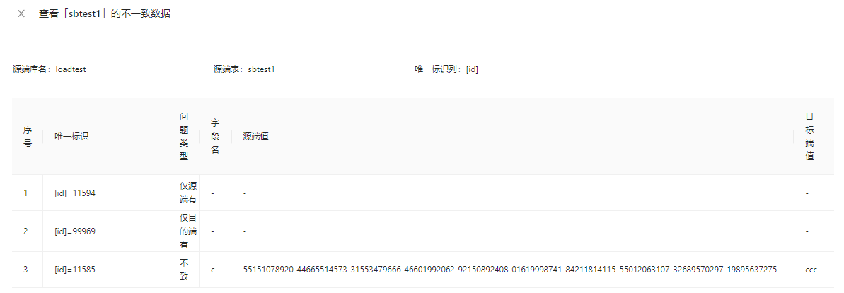 insert into sbtest1 values(77769,69,'9','9');-- 仅源端有