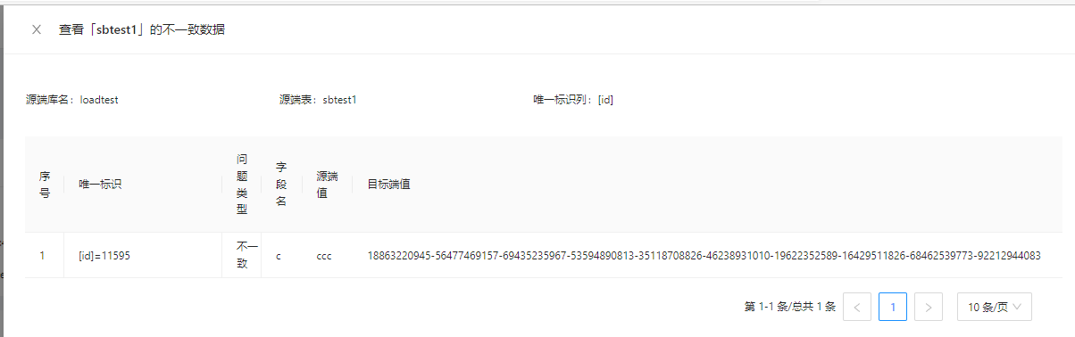 update sbtest1 set c='aaa' where id=11585;-- 仅目的端有