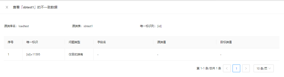 insert into sbtest1 values(88861,61,'9','9');-- 仅目的端有