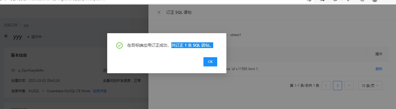经过测试OMS能够对表的insert,update,delete操作导致的数据不一致进行相关校验,并给出修订sql,在目标端数据进行数据修改,保证数据的一致性。