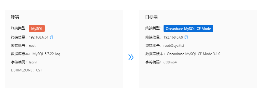 | 192.168.6.69(目标数据库) | 2883 | OB_MYSQL_CE 3.1.0 |