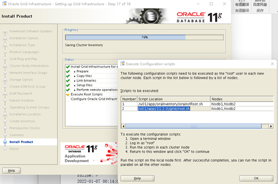 说明:节点1成功跑完root.sh脚本.