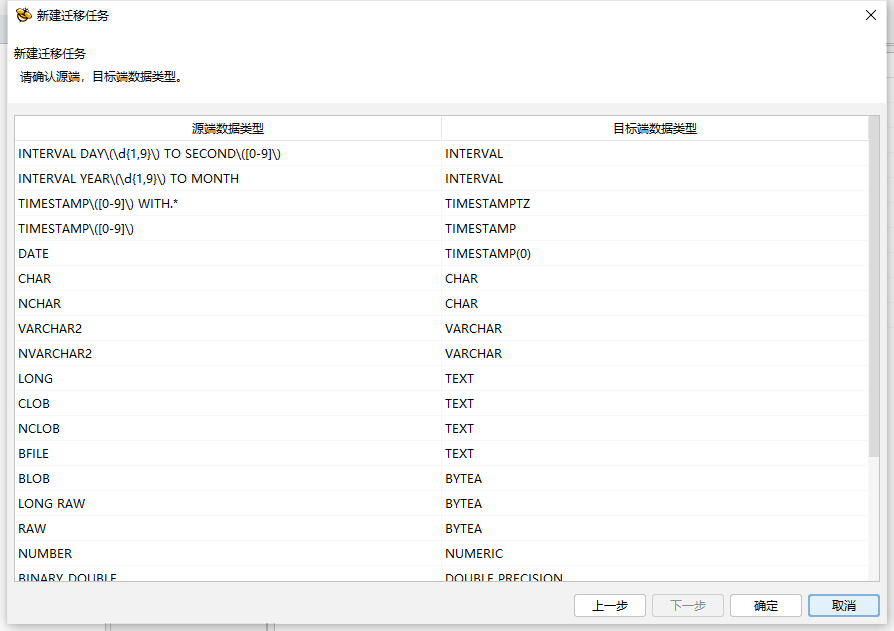 "表模式"是迁移时表模式的设置,分为常规迁移,只迁移表结构,只迁移表数据,只迁移表约束。