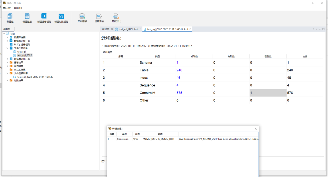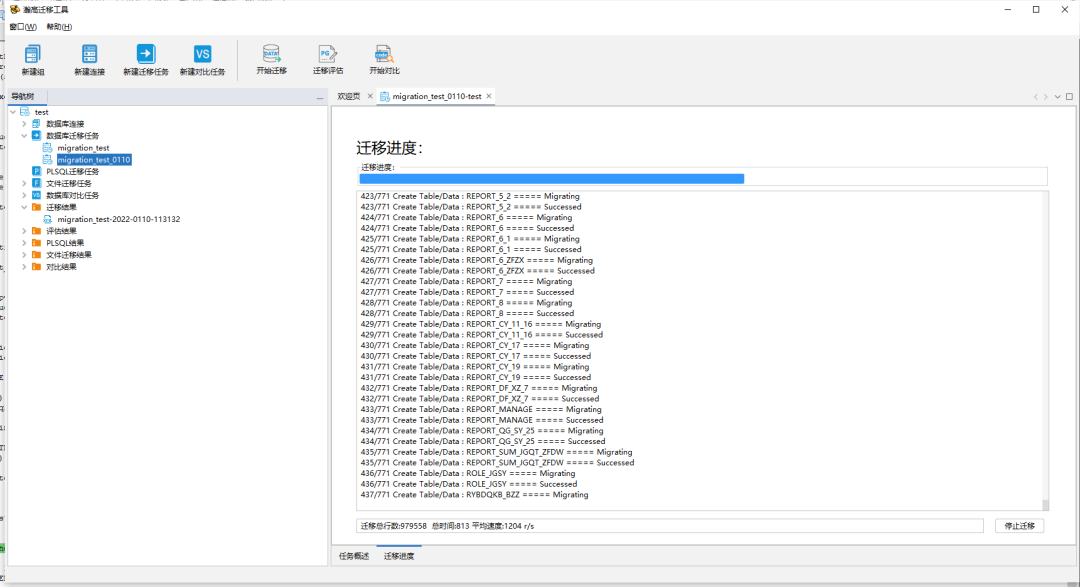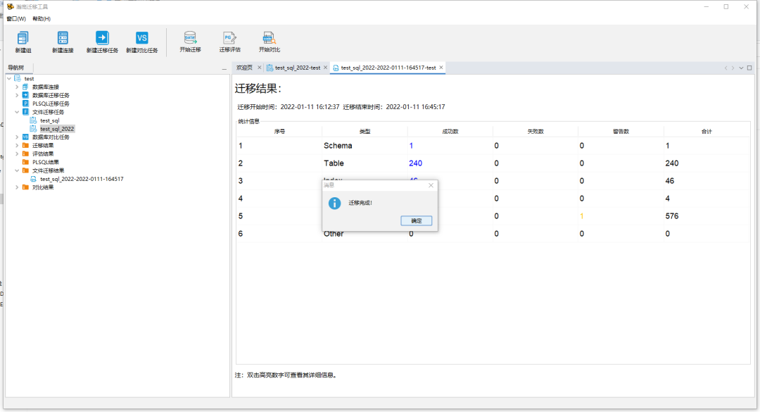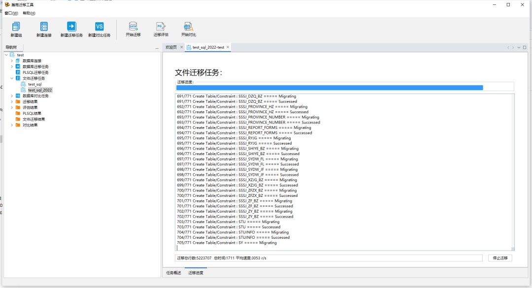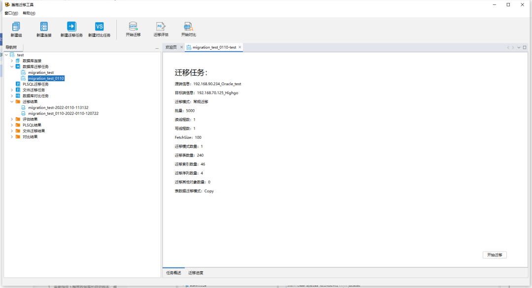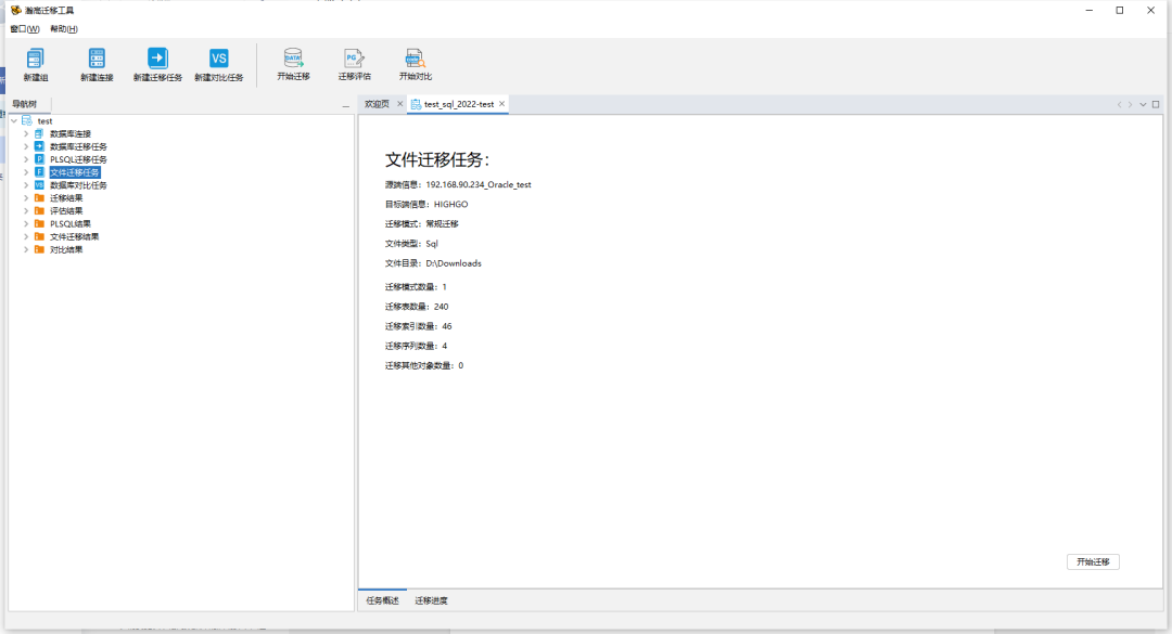 新建迁移任务选择要迁移的对象,可以根据实际需要迁移的对象情况进行选择点选数据库迁移任务中的相应迁移任务,点击“开始迁移”。