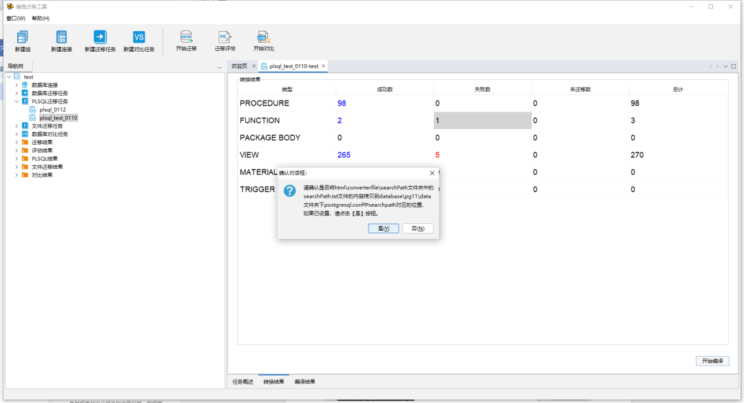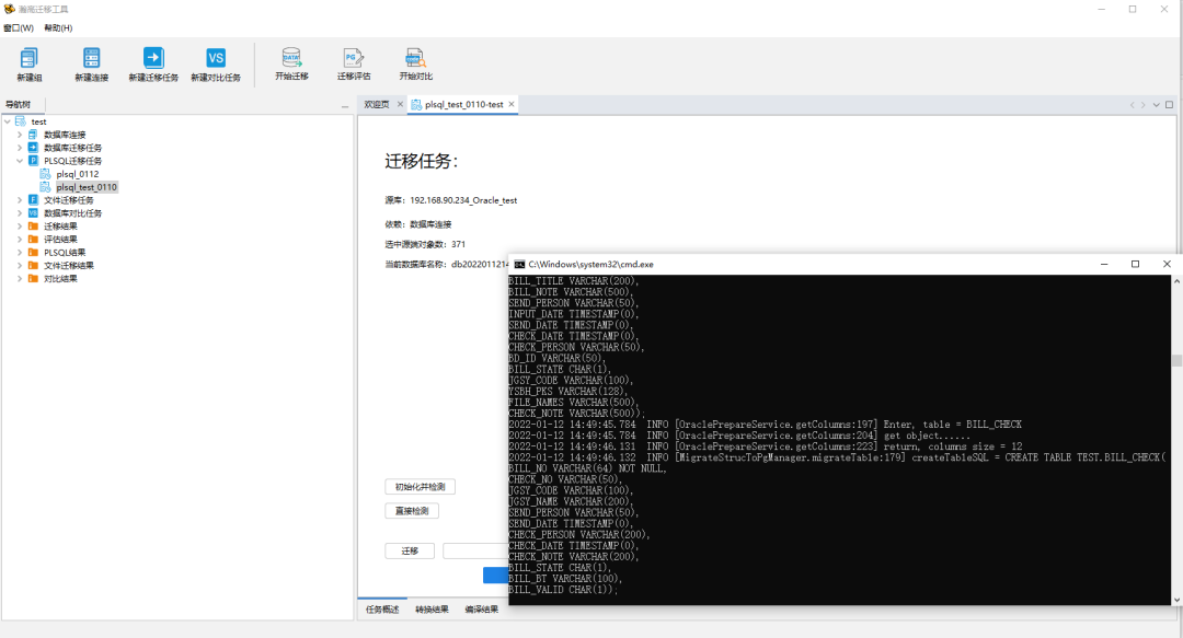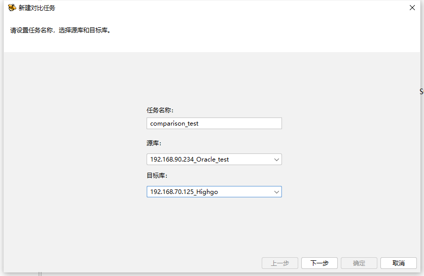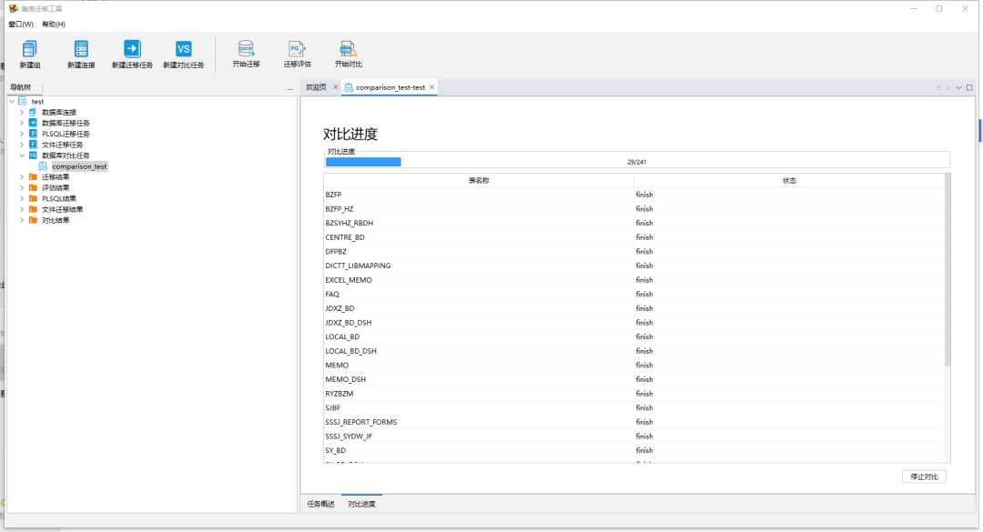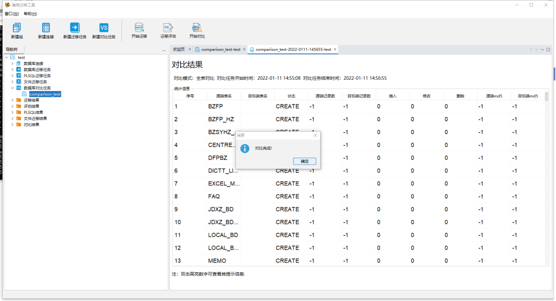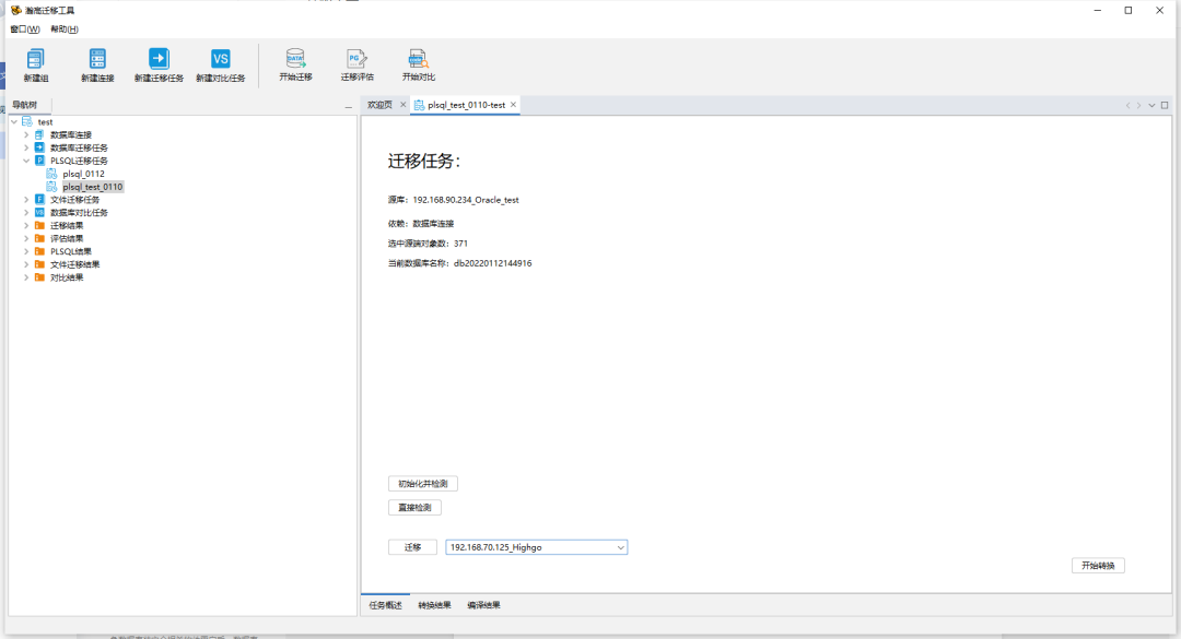 当前数据库名称为当前迁移任务所使用的数据库名称,通过操作不同的数据库,来保证 Plsql 执行互不干扰。在工作组中新建数据对比任务,命名对比工作名称,在源库和目标库的下拉菜单中选择相应的源端与目标端数据库。设置对比任务内容,完成设置源端与目标端的模式并设置,对比模式可以选择全表对比或者逐行对比,点击确定后生成对比任务在数据对比任务中选择相应的数据对比任务,开始进行数据对比