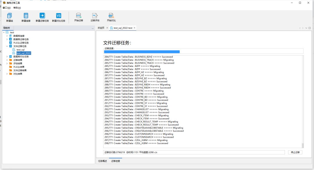 进行文件迁移任务设置,对迁移模式、迁移类型与落地文件存放目录地址、是否保持源库含有大小写的字段、对数据文件是否进行分片保存及分片大小设置,并对迁移对象模式进行选择。选择迁移对象,可以根据需求针对列表内容选择需要进行文件迁移的对象。在文件迁移任务中选择相应的任务,点击“开始迁移”按钮开始文件迁移。文件迁移结束,与直接迁移类似,可以通过迁移结果中的展示内容查看具体成功、失败的数据并点击查看细节。迁移完成时会根据任务配置时文件目录的地址生成具体的落地文件,此次设置的落地文件目录路径为D:\Downloads,表数据将会单独生成到该路径的 TableData 目录下,如下图中的TEST_TableData文件夹目录,默认情况下每张表会生成一个文件,选择分区时,将按分区大小生成多个文件,文件后缀序号自动增加可以根据实际需求导入目标数据库。以上是瀚高迁移工具的一些功能使用介绍,在迁移适配的实操作过程中除了可以根据迁移工具的指引文档来完成,也可以向瀚高数据库申请专职适配迁移工程师来配合完成迁移适配,这样就可以更快速的完成相应的适配迁移工作。