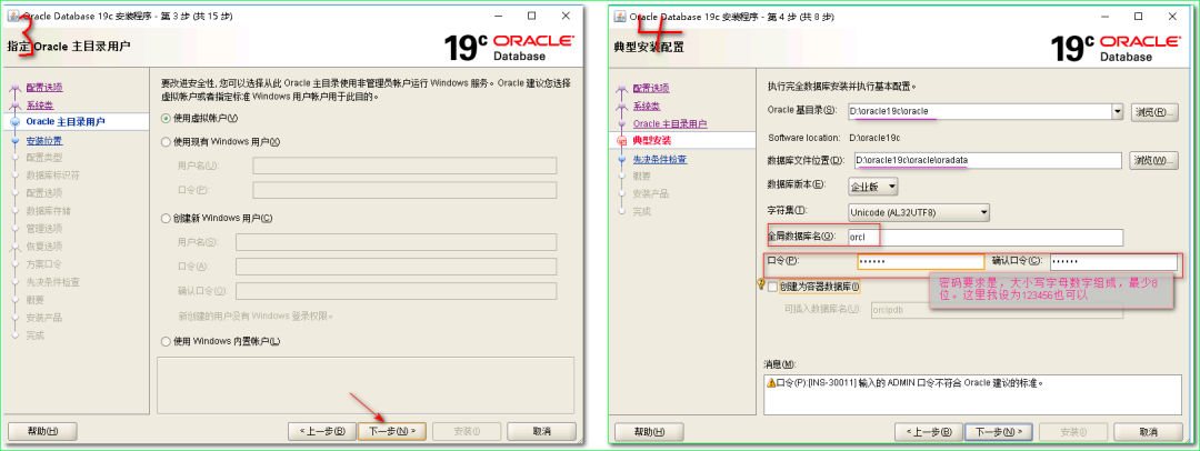2.上方要求建立一个文件夹时,文件名不要有中文或者空格或者特殊字符,一定要全英文,一定要注意!!!(如和我一样将文件夹名为Oracle19c)不要有空格。